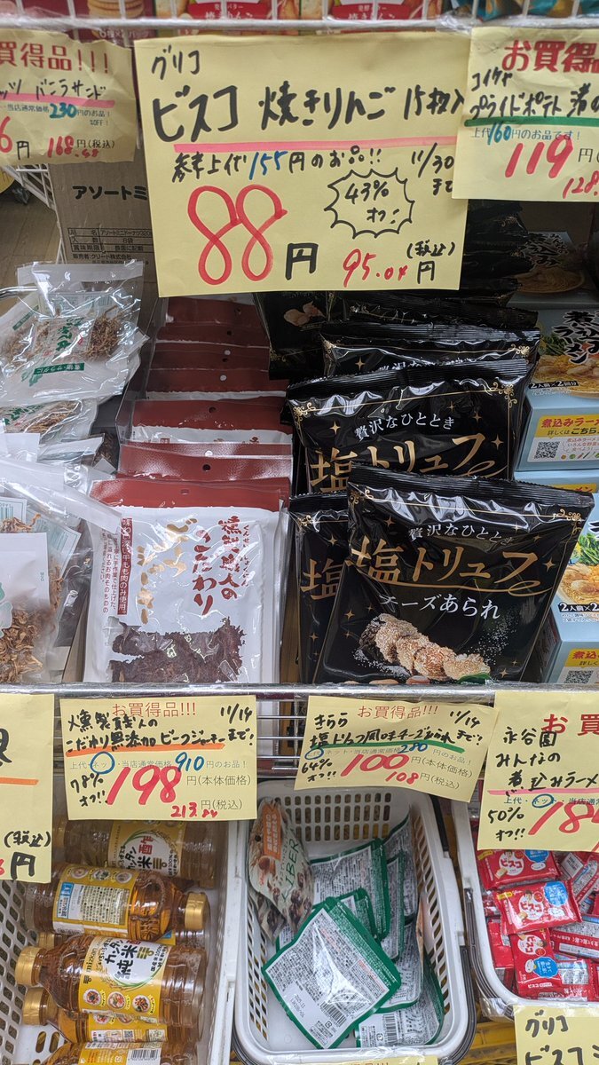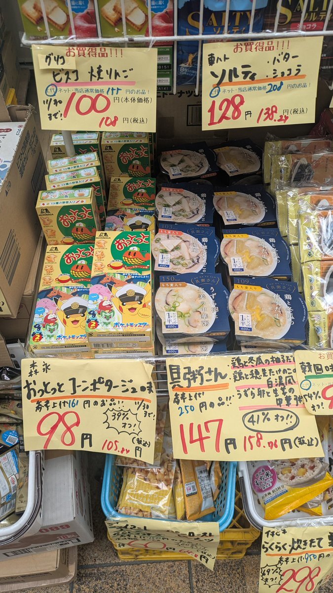 こんにちわ!ワケア千林店です🐱 💮おっとっとコーンポタージュ 🔵上代161円が 🉐105円 💮チョコバーかすてら 🔵上代350円が 🉐128円 💮チョコレート効果 🔵上代300円が 🉐128円 💮チーズあられ 🔵上代280円が 🉐108円でお得です。 ぜひ、ワケア千林店へ。 #千林 #千林商店街 #わけあり pic.x.com/7icjwG9hn3