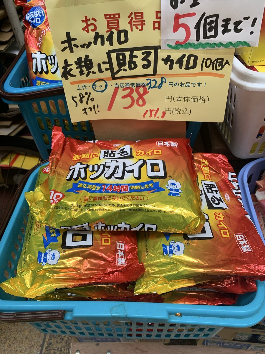こんにちは WAKEA千林店です✨✨ お買い得商品のご紹介です👍️ 🉐ホッカイロ 貼る 貼らない 参考価格328円の品が税込151円⚡️ 🉐柿の種チョコ 4種MIX 参考価格350円の品が税込108円⚡️ #千林 #千林商店街 #訳ありショップわけあ pic.x.com/akpP491ICz