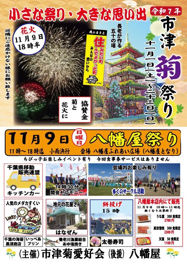 千葉県まるごとゴミ拾い’25 @市原市八幡屋祭りGS 2025年11月9日(日曜日)開催です 場所 八幡屋ふれあい広場 集合9:50 スタート10:00〜 お祭りの前に会場をキレイにしてお客様をお迎えします。 marugomi.jp/1109chibamaru_… #まるごみ #ハートラック #千葉県まるごとゴミ拾い #八幡屋 #花火 pic.x.com/5P0R291rF2