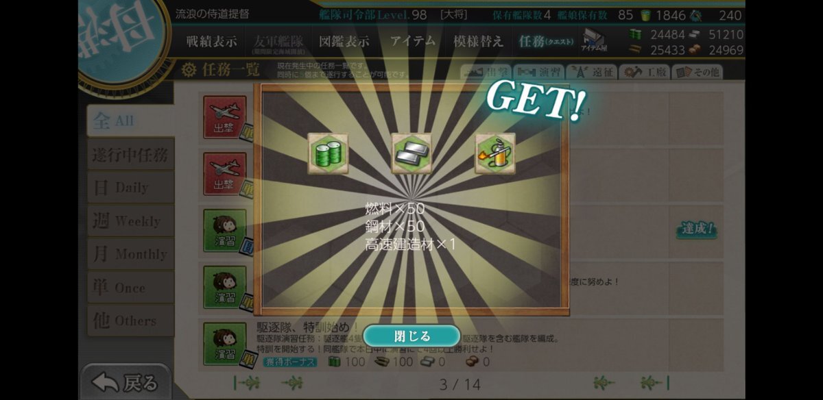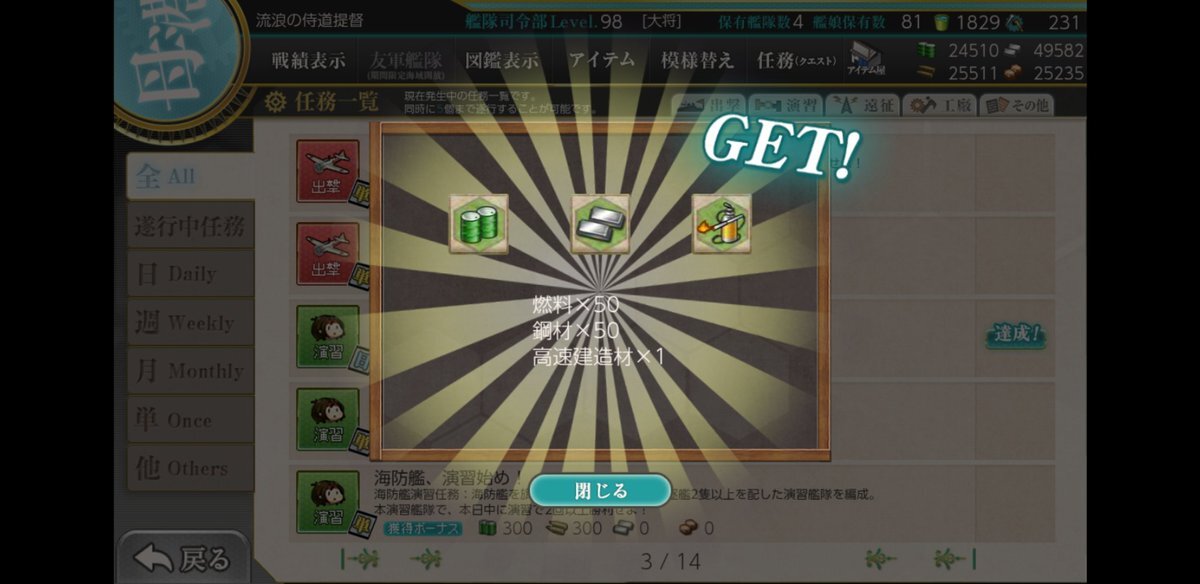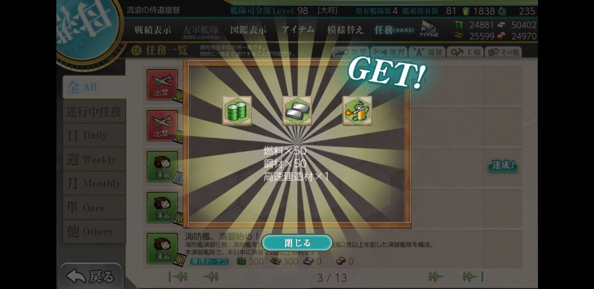 艦これ アプリ🚢⚓😃では。10月6日 : 午前の演習 、3回クリアでござる🚢⚓🤼‍♀️📝🔔😺。 #艦これ #午前の演習 #演習で練度向上 #第一艦隊 #秘書艦金剛 #制空権確保 #最上 pic.x.com/fAMfYEhdCM