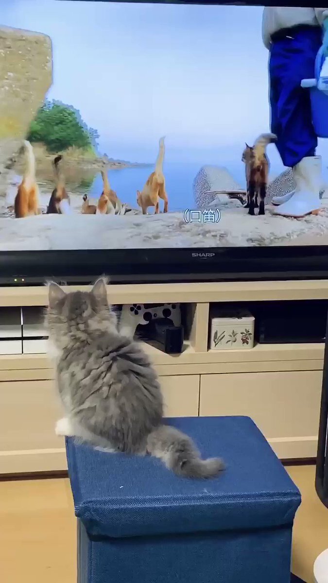 猫の番組を見せたら一緒に跳んでてかわいかった猫