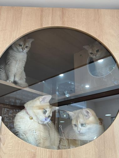 猫ちゃんたちがお互いを見つめ合い、丸い窓越しに小さな秘密を感じているようです!午後のペットショップは愛と好奇心で満ちています🐱💓 #ペットショップ #猫 #午後のひととき" pic.x.com/9LOZ8yBIcT