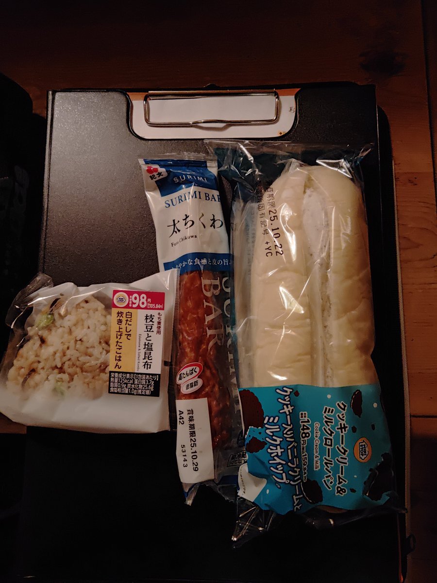 今日のもぐもぐ。忍たまのよい子達の先生必須の 出席簿と一緒⭐️あっちの半助さんは絶対買わないものな〜んだ(笑)?色々あって左2つのみ、結局終わってから片付けながら頂いたのはここだけのヒミツ🤫 #半助流忍術学校 #Interval忍 #おにぎり pic.x.com/VqfSusTNMY