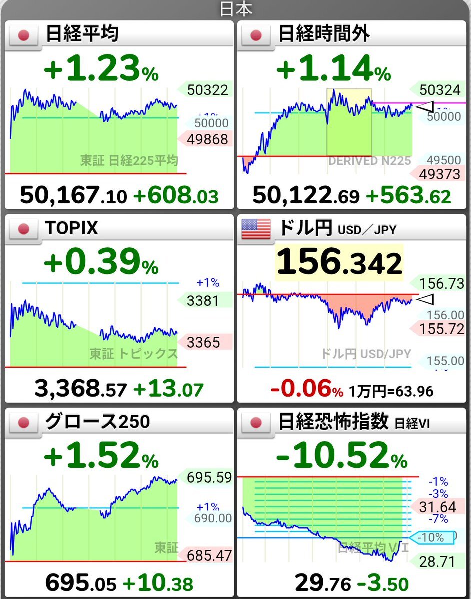 📈日経1.23%高収50167点!半導体がけん引、東京エレクトロン+4.2%。4兆円産業基金の効き目で、科技股買いムード強化👏 #日経225 #半導体株