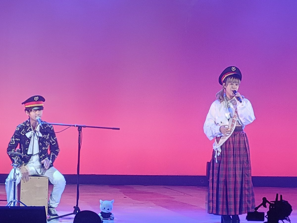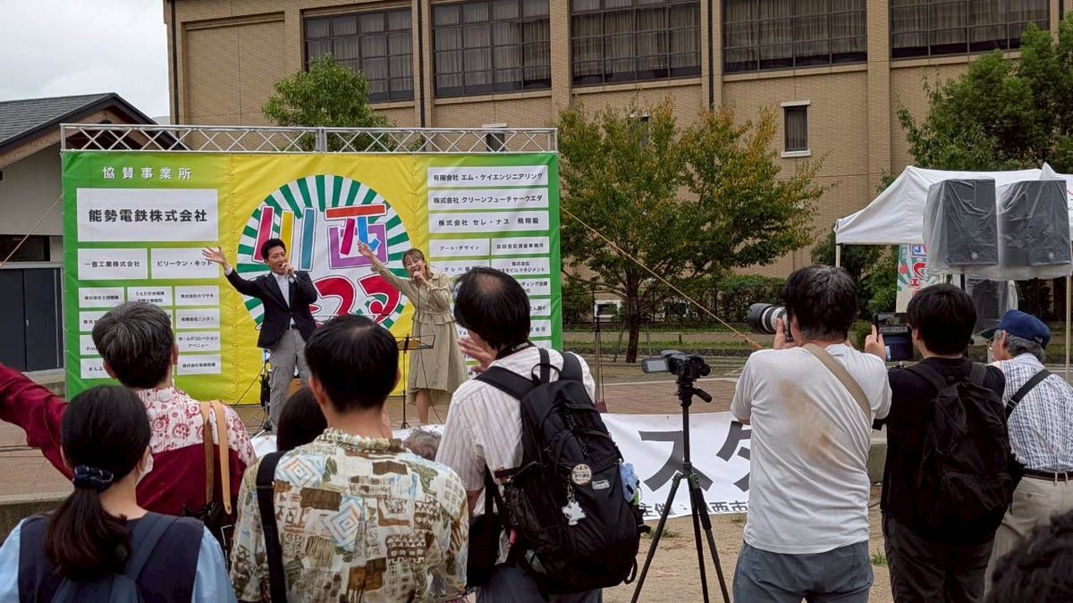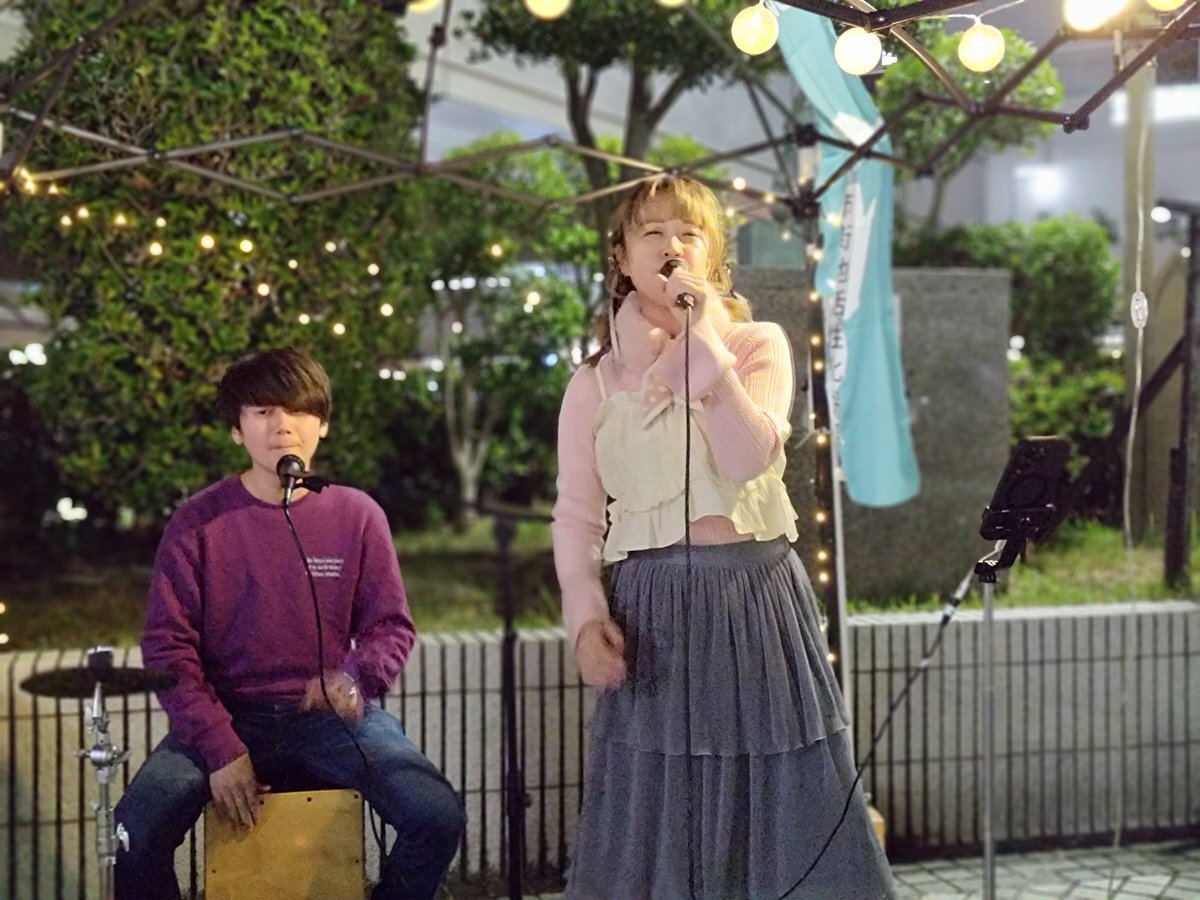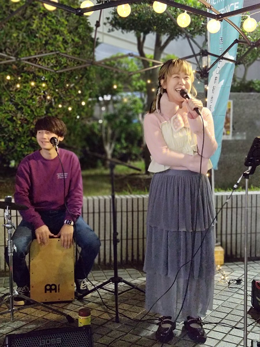 2025.11.16 川西能勢口駅前 #川西バル『音と食の架け橋2025 』vol.6 🆕🚃半熟BLOOD🚃🆕 司会と歌手活動をしてる #半熟BLOOD の橋本菜津美さんと #うさを さん😊 難波で一度話した事があって、今日チラシ配ってる時に声かけて歌を聞いたけど好きかも😅司会もするからトーク力もあり面白かった🤣 pic.x.com/bLQT6gdtFl