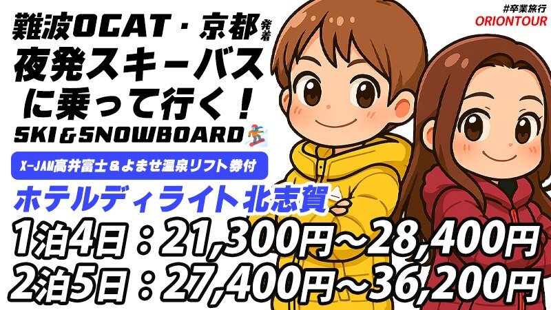 この冬、最高って言える瞬間を。 難波OCAT・京都発着🚍 夜発スキーバスに乗って行く!SKI&SNOWBOARD🏂 🏨竜王プリンスホテル 宿泊パックを要チェック✨ ‣orion-tour.co.jp/ski/topics/kan… #旅行会社 #オリオンツアー #卒業旅行 #スキー #スノーボード pic.x.com/OF9BjgF8Cf x.com/orion_ski/stat…