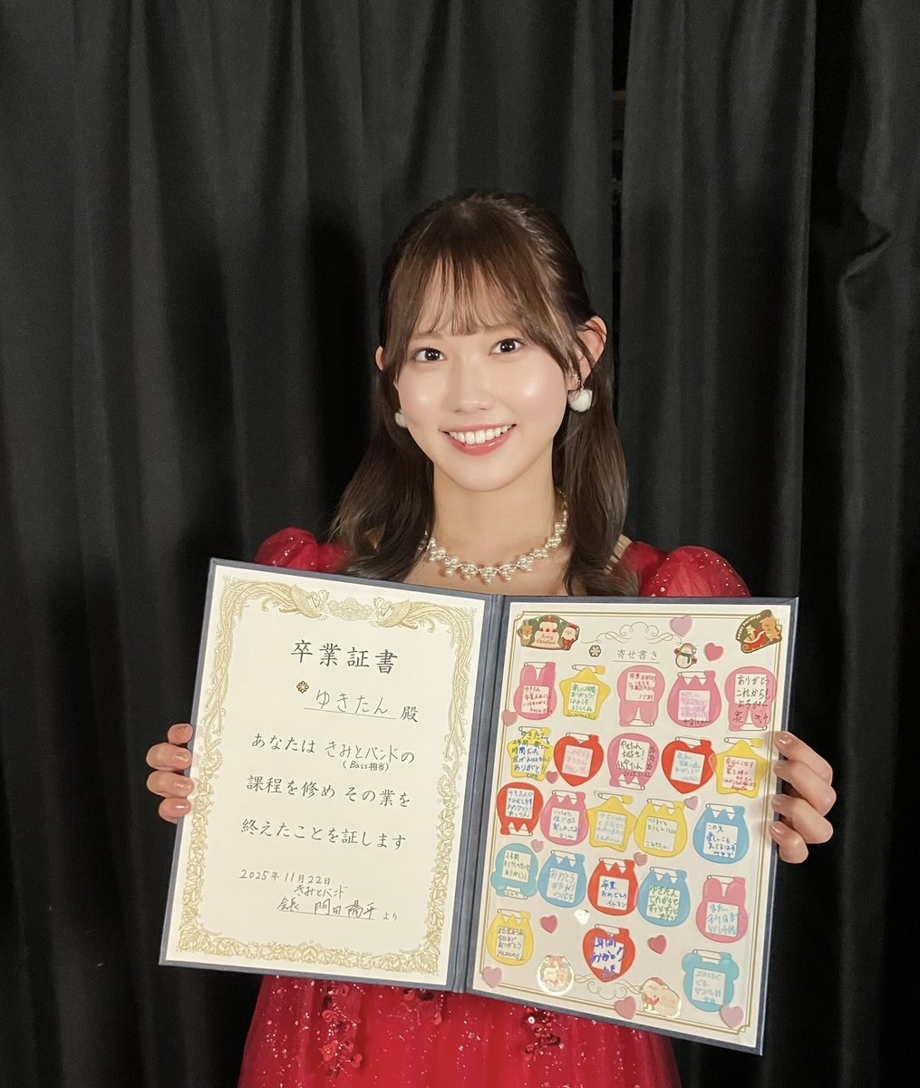 ゆきたん #きみとバンド #卒業 東京 #FCイベント みんなの寄せ書きつき #卒業証書 を会長から渡してもらいました😊 ゆきたんが着た #ステージ衣装 の 生地を使った #缶バッジ などを いただけて記念になりました🥹 ゆきんこの仲間に入れていただき どうもありがとうございました #きみとゆきたん pic.x.com/dOVuye401s x.com/yukitan_0131/s…