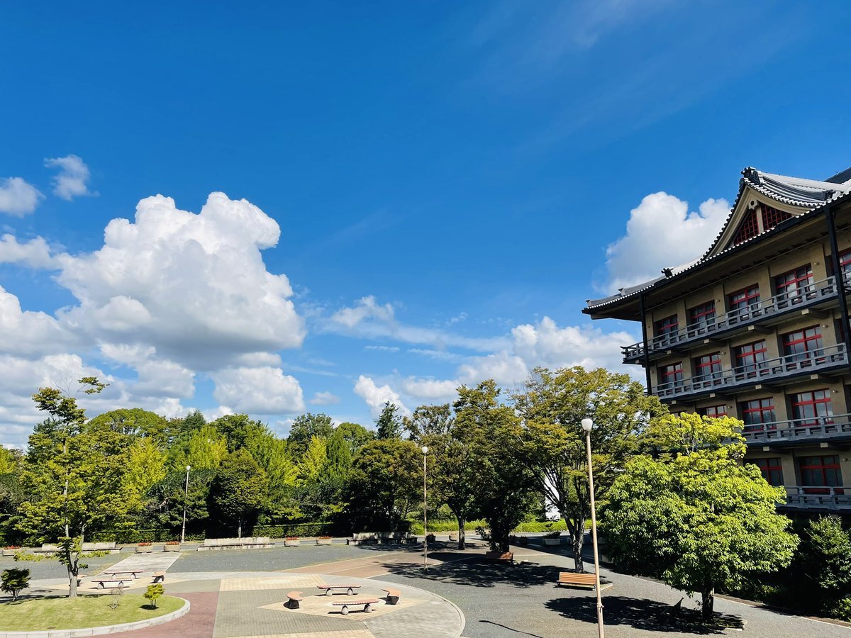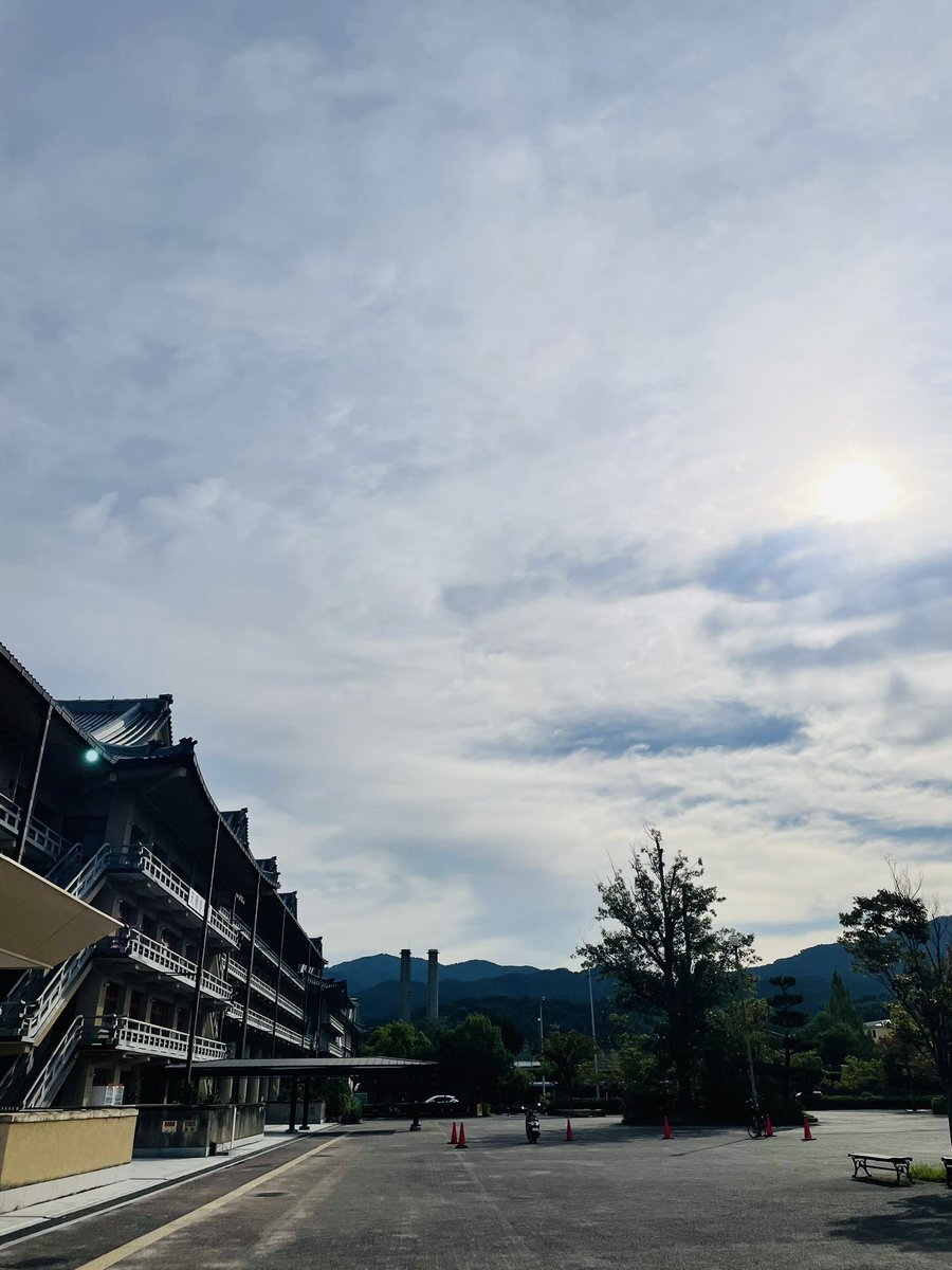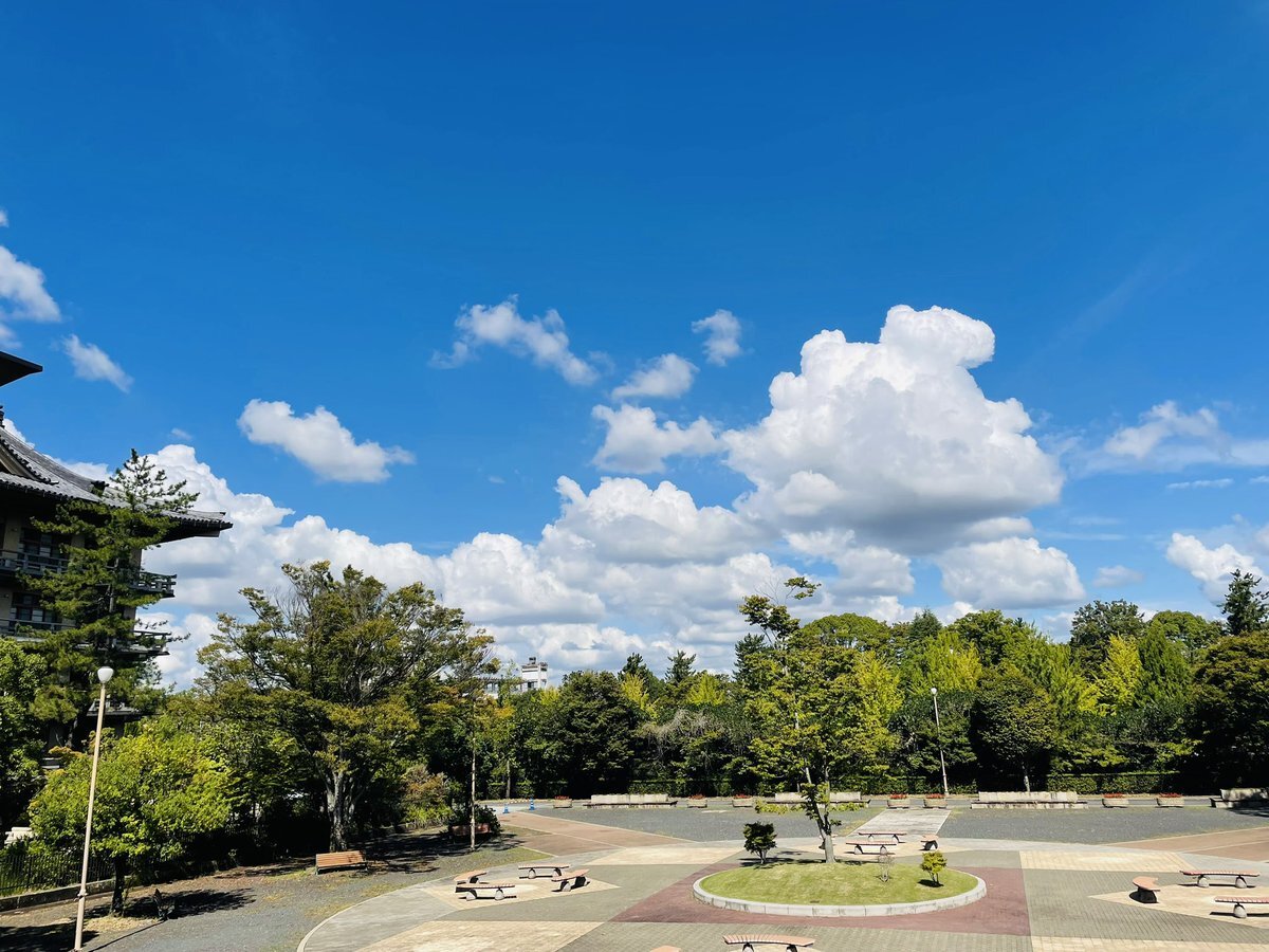 秋の空…。9月も最終日。お昼前、南右第二棟から本部神殿方向を臨む。雲が出ても晴れて日差しが強い。日向はまだまだ暑い…。 #おやさと散策 #南右第二棟 #秋の空 pic.x.com/mtYCj2Ag2F