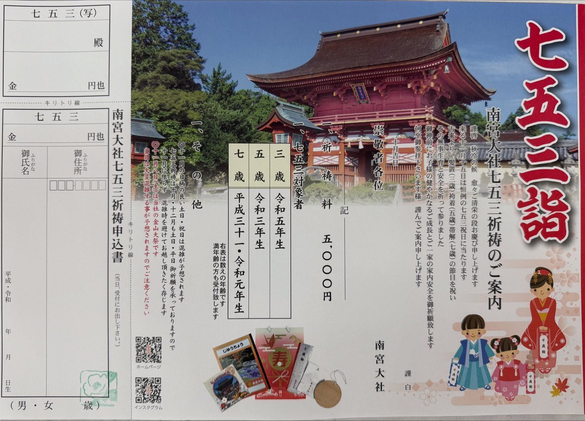 七五三の御祈祷は随時受付しております。 下記の日にちは祭典がありますので御祈祷の受付ができない、または混雑が予想される日にちとなります。 11月1日、11月15日 9:45〜10:30は御祈祷受付不可 11月23日 10:00〜11:30は御祈祷受付不可 11月8日 午前中は金山祭のため混雑が予想されます。 #南宮大社 pic.x.com/wcZd0iITbU