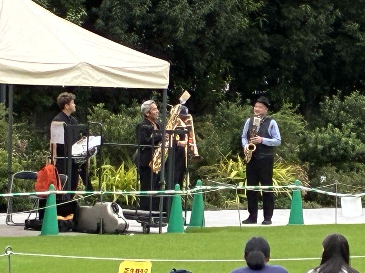 最初のステージ、雨は降らずになんとかできました。次はどうなるかなー あと14:30〜、15:30〜、16:30〜、 とやります。私はバリトン担当です♪ #南池袋公園 pic.x.com/od1YaxgnnZ