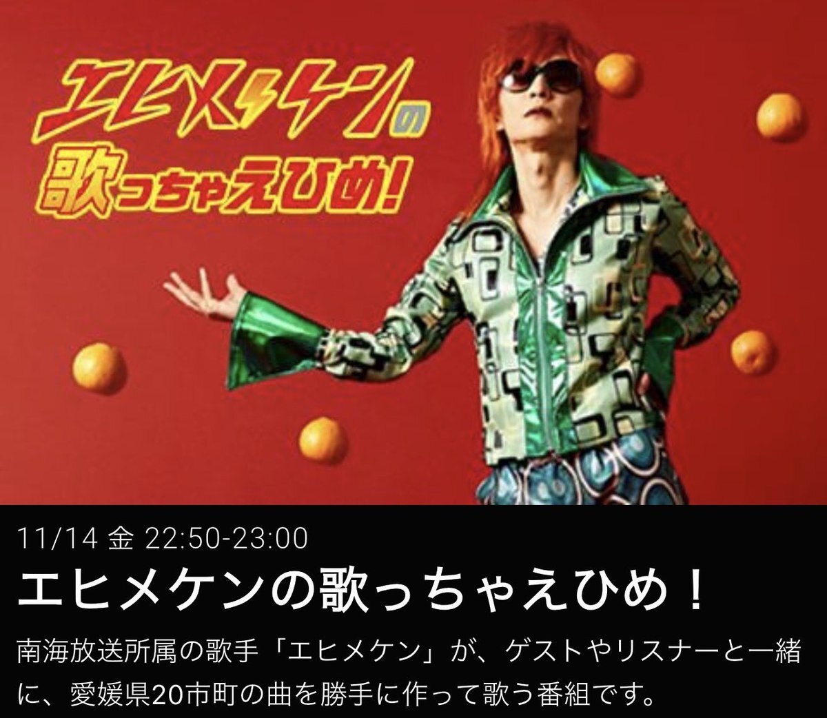 本日22:50 #エフナン #南海放送 でオンエア 「エヒメ⚡️ケンの歌っちゃえひめ!」 今日からは上島町の歌を作ります。 お題は「青い◯◯◯」」🎤 お聴き逃しなくLove🧡 ラジコで聴く🎧 👉 radiko.jp/share/?t=20251… #エヒメケン #愛媛の魅力を勝手に歌う歌手 pic.x.com/M7eeP4cBDC