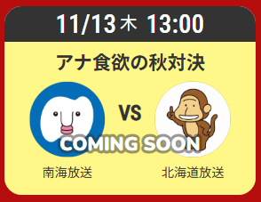 // まだ見ぬニッポン、発見バトル✨ #南海放送🆚北海道放送の 戦いスタート🙌 \\ 今月は #高野アナ がお届け! #食欲の秋 をテーマに参戦中ですよ~🔥 ハートをたくさんタップして 愛媛の応援お願いします🥺 #のぞいてニッポングランプリ 🔽愛媛の応援はコチラ local-tv.marketplace.rakuten.co.jp/top/?home=rnb&… pic.x.com/56otf37nBL