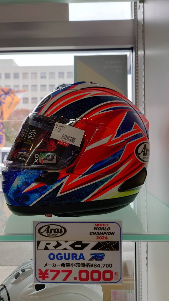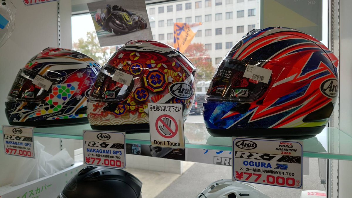 南海部品和歌山店です(๑•̀ㅁ•́ฅ✧ 本日も営業開始しました‼️ アライヘルメット RX-7X小椋 入荷しました🤩👍 現役日本人MotoGPライダーのレプリカモデルとなっております🎉 #南海部品和歌山店 #バイク #アライ #ヘルメット #ツーリング #バイク好きと繋がりたい #MotoGP pic.x.com/nOwlXY1xR3