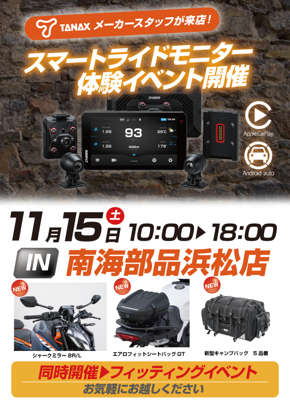 #南海部品浜松店 です 11月のメーカーイベントのご案内です 11月15日(土)に #TANAX 11月16日(日)に #Jトリップ#XAM#DID となっております 聞いてみたいことがあるだけでのご来店でもOKです ぜひご利用になってください pic.x.com/mtQvKTjjpo