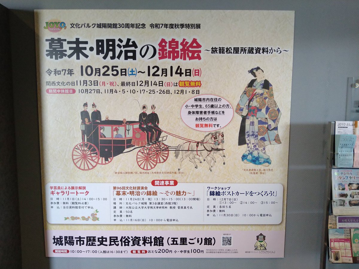 城陽市歴史民俗資料館の「幕末・明治の錦絵〜旅籠松屋所蔵資料から〜」展を観てきました。 芳幾や周延などの錦絵を、開化絵や新聞錦絵などにジャンル分けして紹介されていました。 私の所有する浮世絵も、「大﨑歴史文化研究所」名義で紹介されています。 #博物館に行く #城陽 pic.x.com/BACIp6OXMg