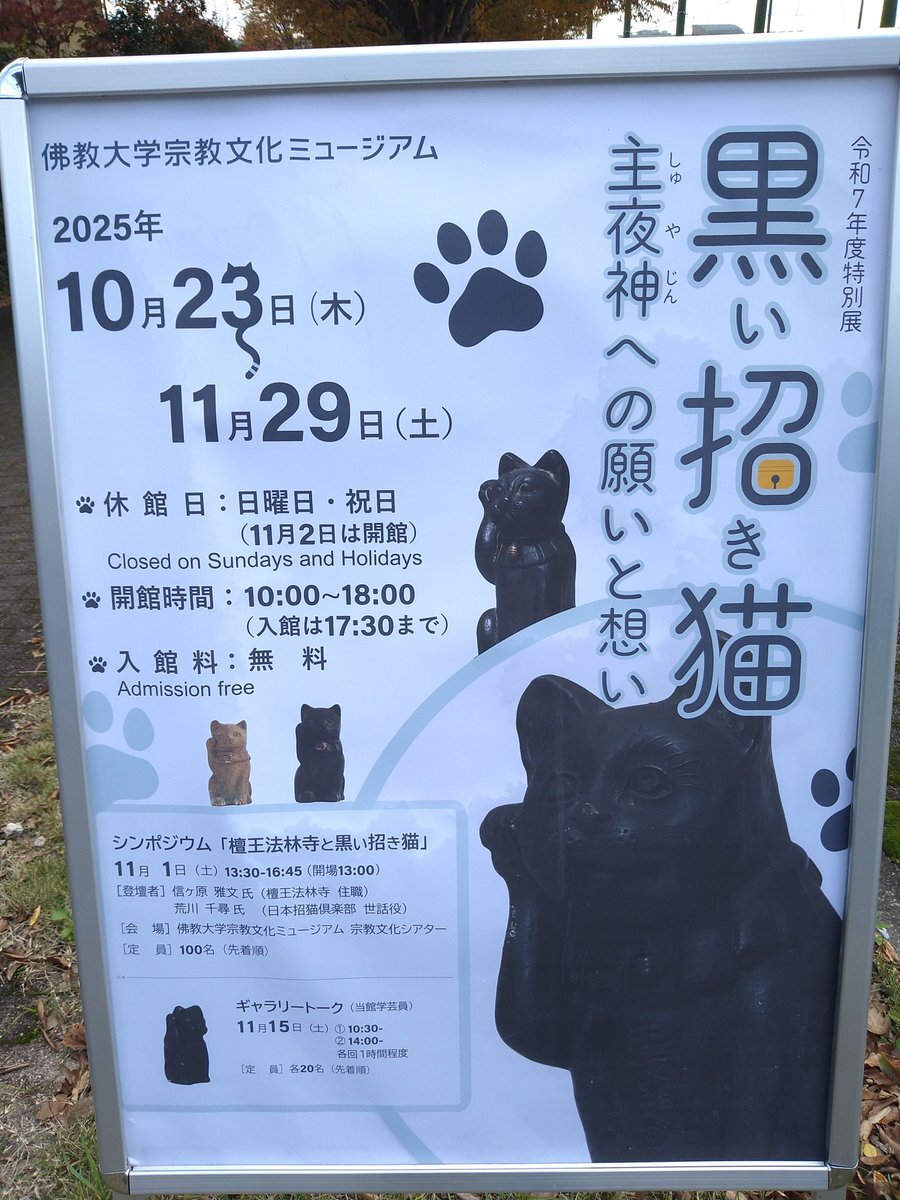 佛教大学宗教文化ミュージアムの「黒い招き猫 主夜神への願いと想い」展を観てきました。 招き猫の変遷の見方や黒猫の扱われ方の歴史の他に、展示品が元々保管されていた寺院についても紹介されていました。 #博物館に行く #嵐山 pic.x.com/DhZtCkSN6O