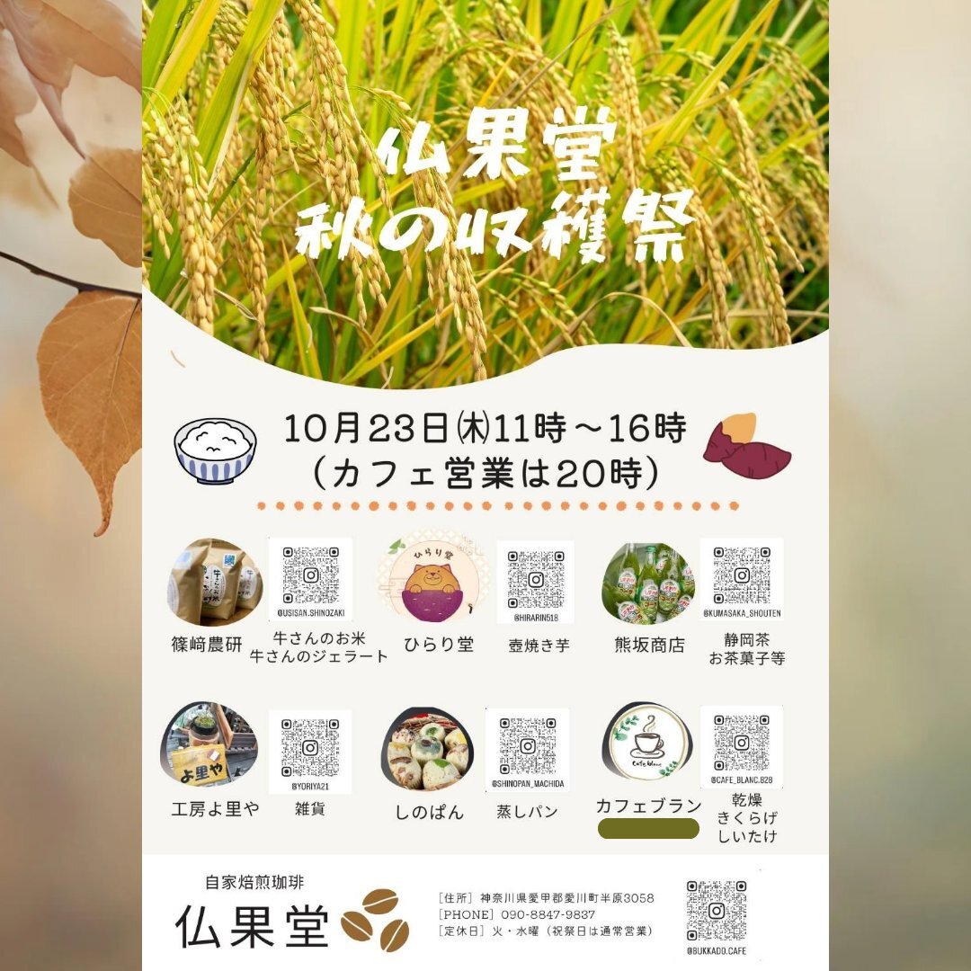 只今 曇り 12.5℃ 風無し。 本日 12:00~20:00まで営業です。 秋の収穫祭は11:00〜16:00です。 今は冷えており少し気温は上がるかと思いますが服装にお気をつけて。 よろしくお願い致します。 #仏果堂 #仏果山 #愛川町 #宮ヶ瀬 #厚木 #愛川町カフェ #宮ヶ瀬カフェ #厚木カフェ #カフェ pic.x.com/Tdpu6SfKrC