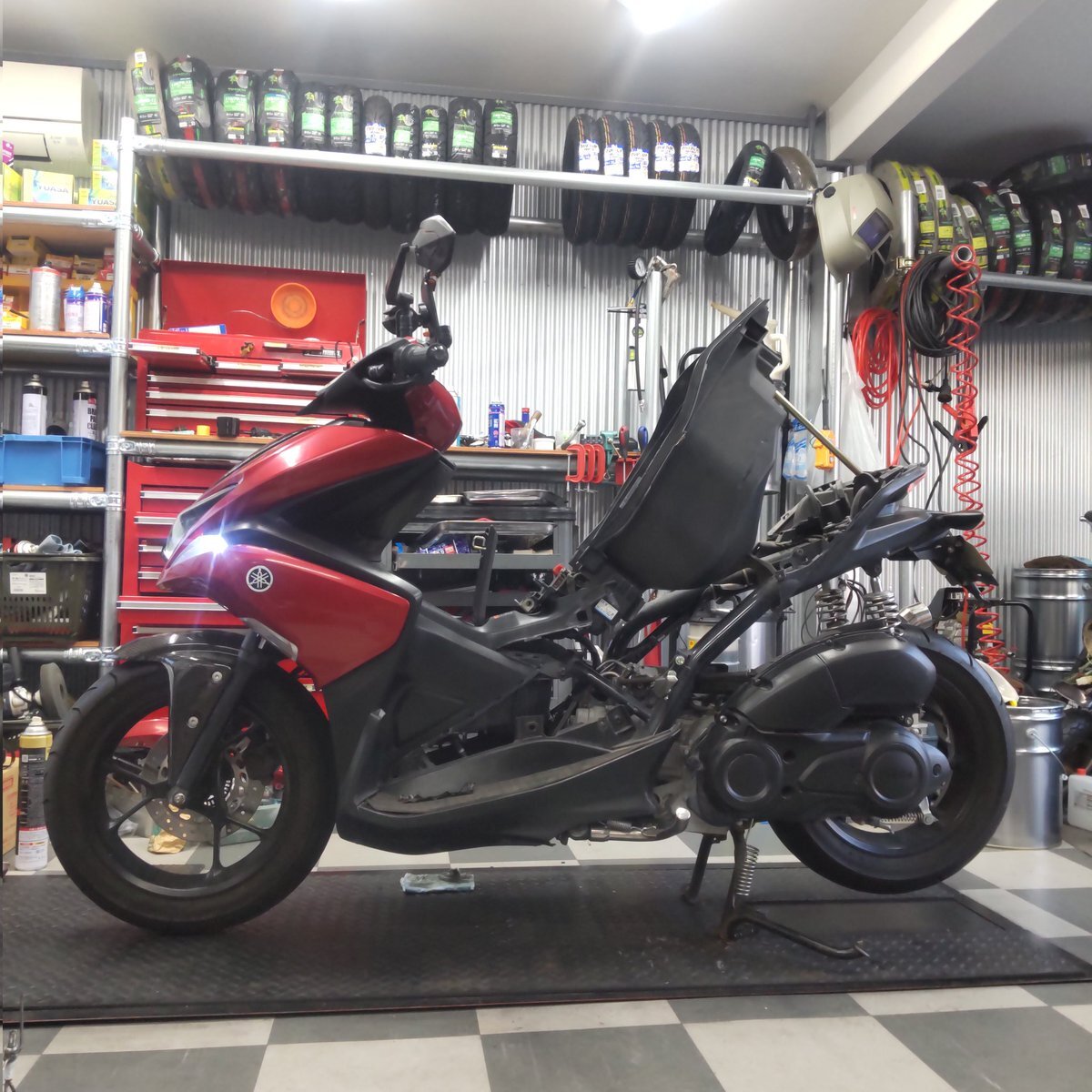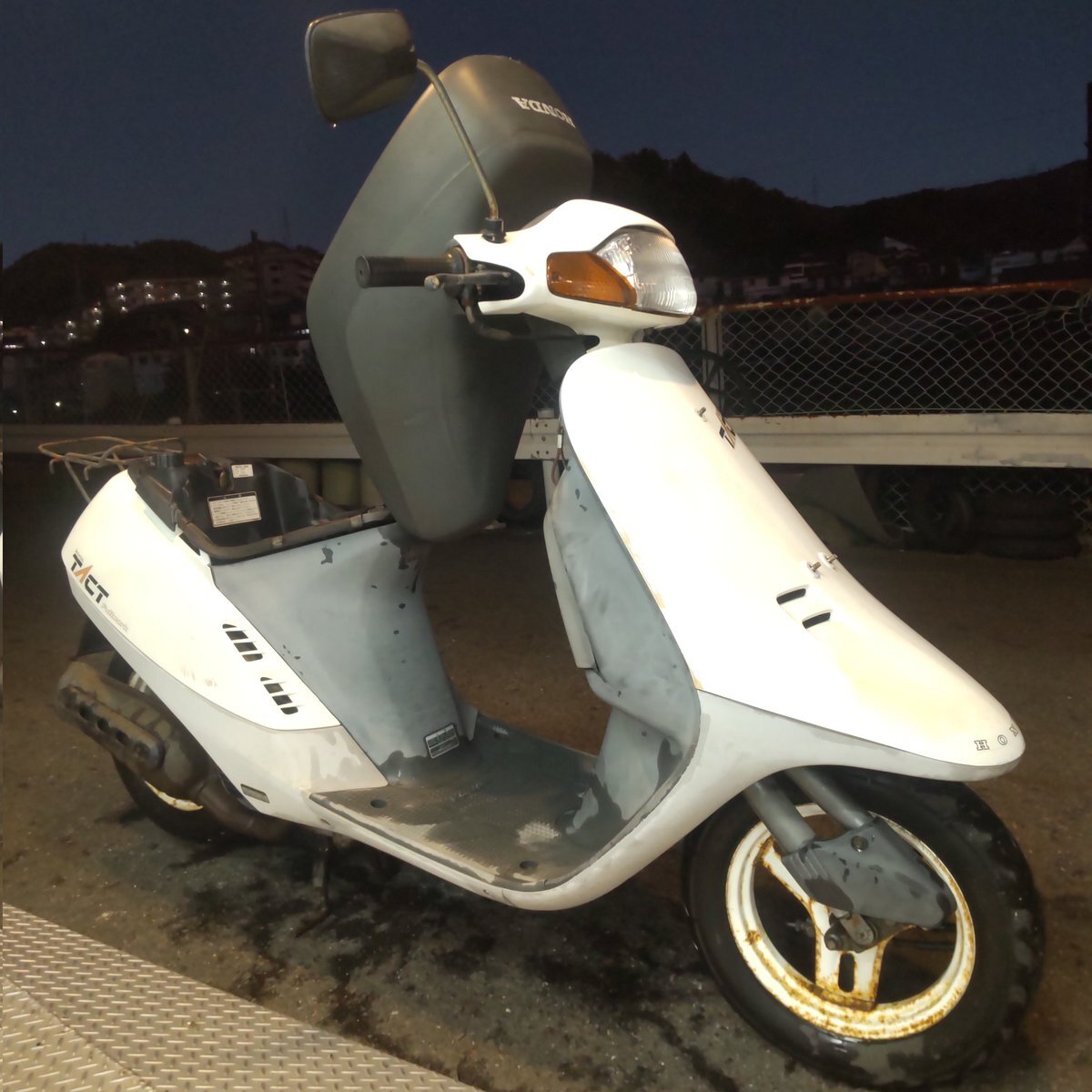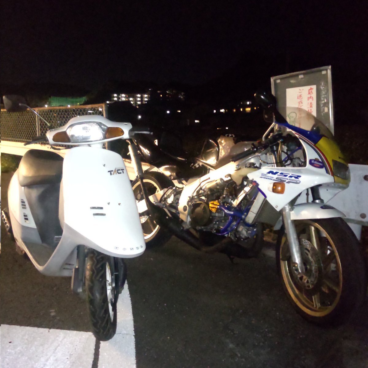 #ホンダ #AF16 #タクトフルマーク💨 通称 #メットインタクト🌠長年の眠りより叩き起こすべく作業中🧑‍🔧 お客様の #NSR とパシャリ✴️令和の写真では無い😲完全に #1990s の写真みたい😅🙌#KsGARAGE #ケーズガレージ #町のバイク屋 #修理 #新車 #中古 #車検 #原付 #大型バイク #キャブレター pic.x.com/oBnVsc85Ak