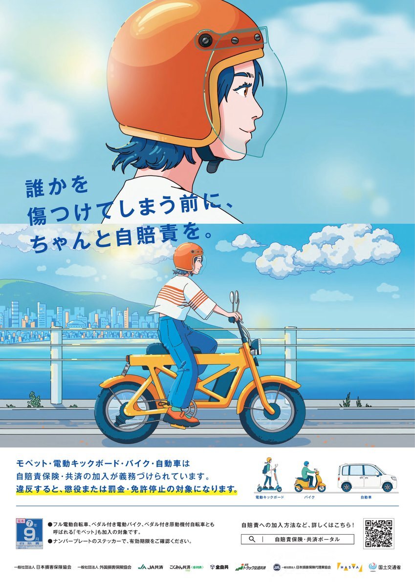 日曜日ですね✨ 原付やモペットでお出かけする方もいらっしゃるのではないでしょうか。 これらの車両の運行には自賠責保険が必須です⚠️ 無保険での走行は拘禁刑または罰金の対象になります。 必ず加入してください❗ mlit.go.jp/jidosha/jibais… #モペット #原付 pic.x.com/2KqNL67vXv