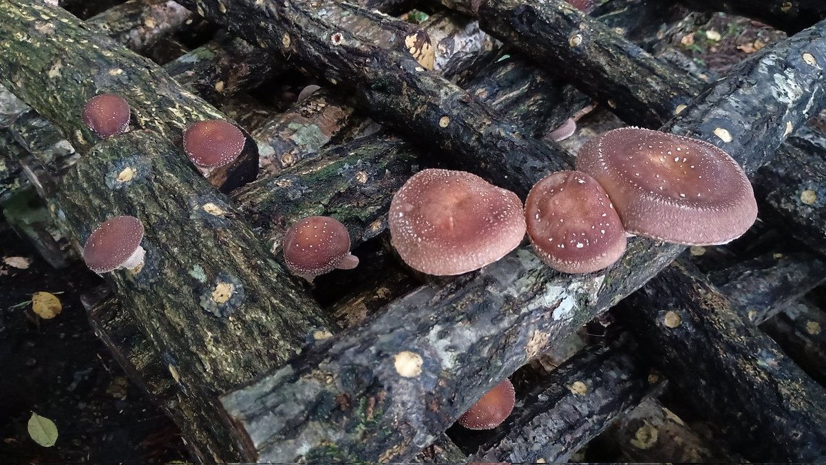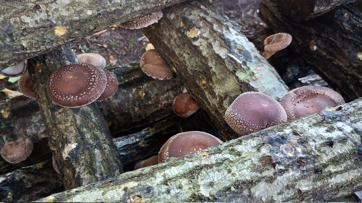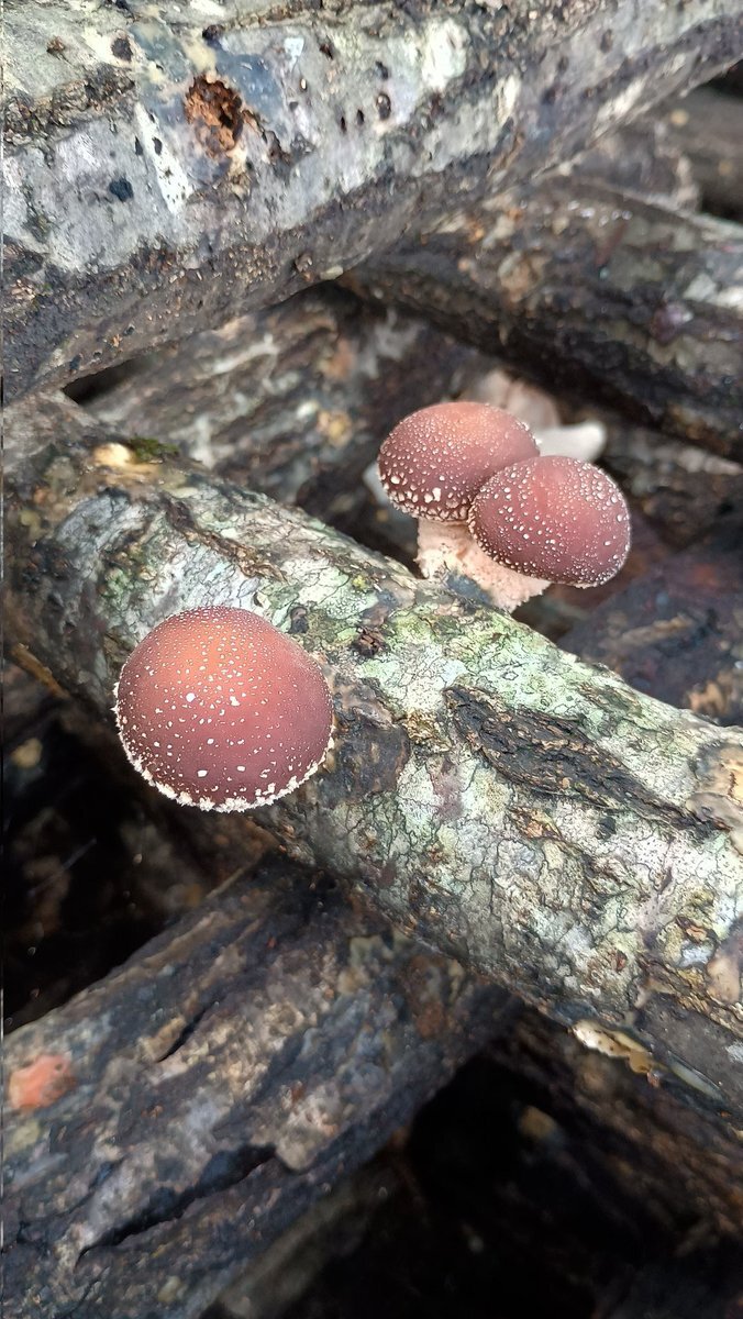 へへ 今年も椎茸の季節がやってきた! 原木伐採から2年 やっと生えて来たよ👍 朝晩の気温差があるからなのか、肉厚でうまそう〜 #椎茸 #原木栽培 #4年目 これから、春までいっぱい採れるといいな〜 pic.x.com/tWL77GCW4u
