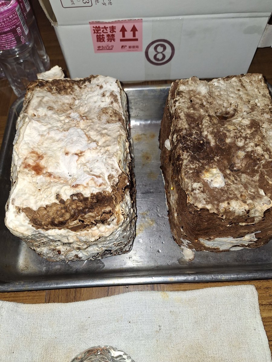#椎茸 #ブロック栽培 #原木栽培 今年は気温が高く養生がかなり難しかったのでちゃんと発芽するかどうか。 片や原木丸太はやはり異常高温と乾燥に対する処置がまずくて菌が十分に回り切っていなさそうで失敗かも知れません😅 pic.x.com/0v5ywyAFMy