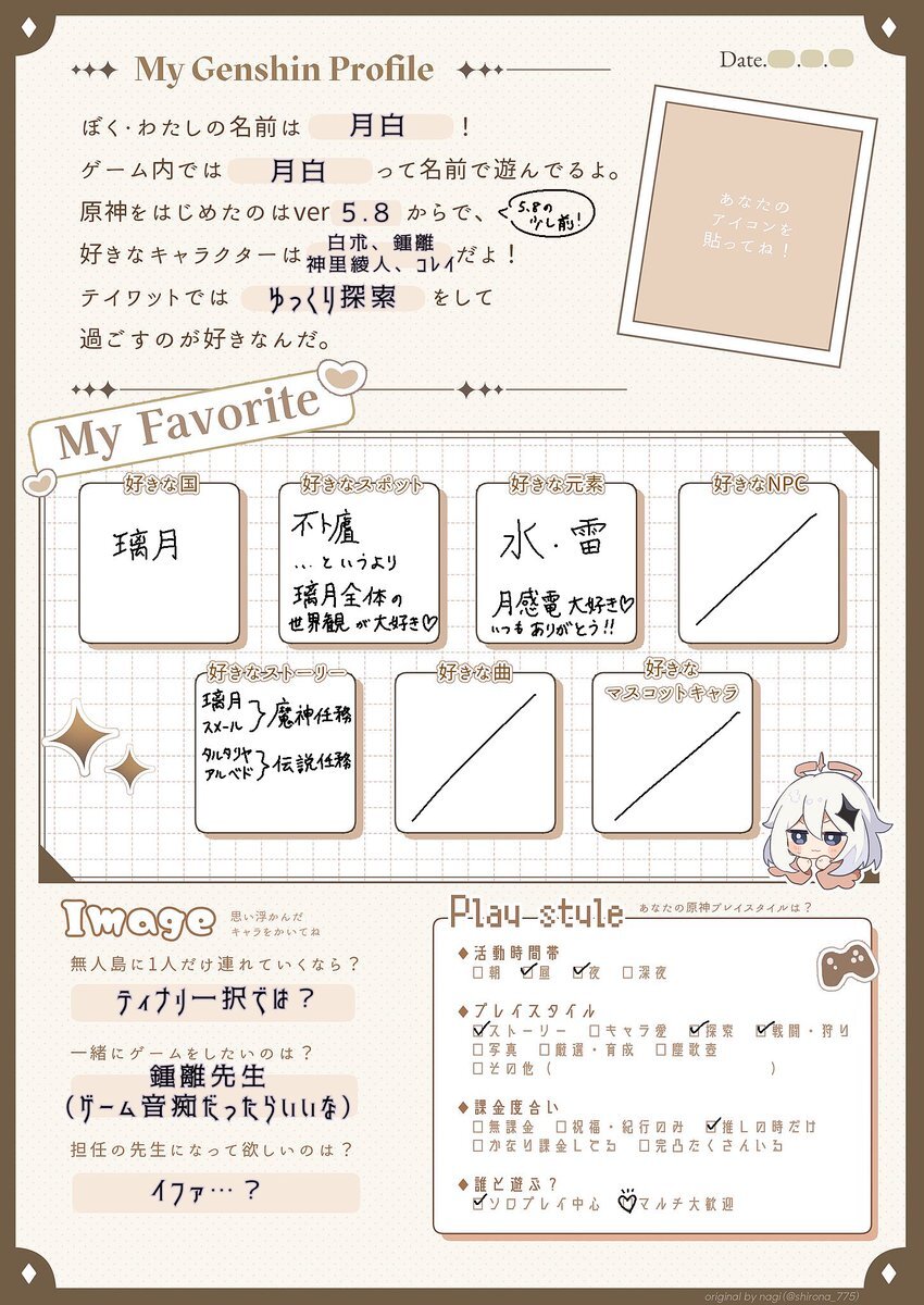 #原神プロフィール帳 #原神レイヤーさんと繋がりたい #原神好きさんと繋がりたい テンプレお借りしました🙌 初心者で絵もコス写真もありませんが今後出していきます 反応で気になった方のみお迎えします🏷𓈒𓏸︎︎︎︎ pic.x.com/vOgsdWehBZ