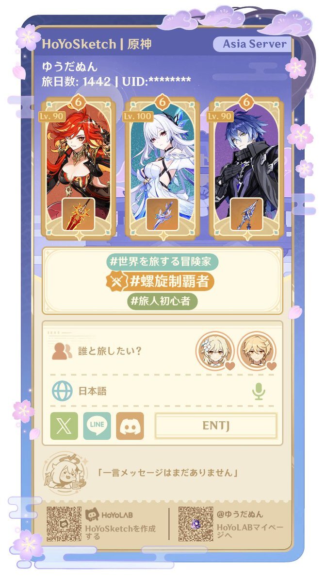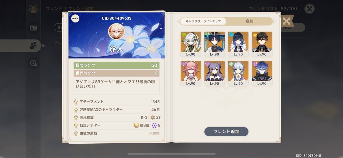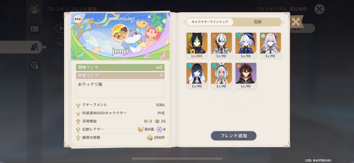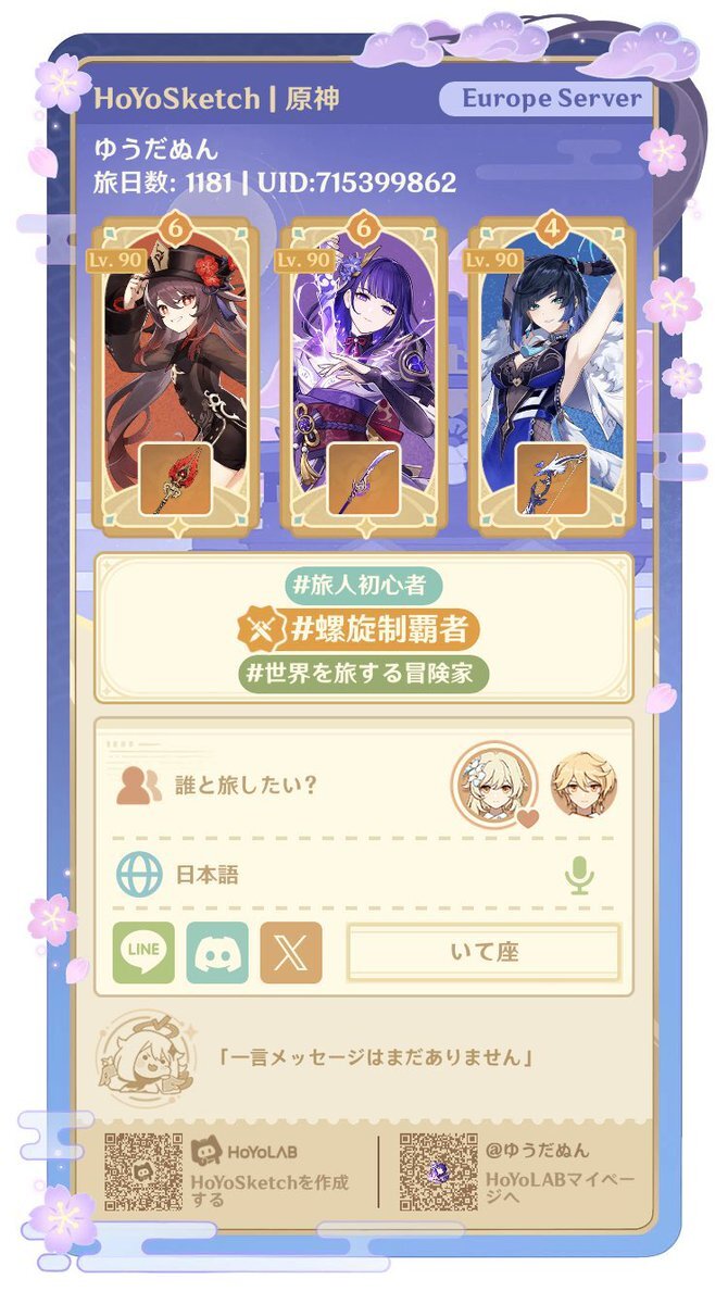 フリンズ完凸記念に更新🙂↕️ フレンド少ないので鬼絡み希望๛ก(ー̀ωー́ก 25↑VC◎ Asia鯖、Europe鯖の2垢でやってます ※Euサボり気味 ♡or↻で気になった人お迎え🤝 #原神 #原神フレンド #原神自己紹介カード #原神勢と繋がりたい #原神好きさんと繋がりたい pic.x.com/JrlXetzJ3V