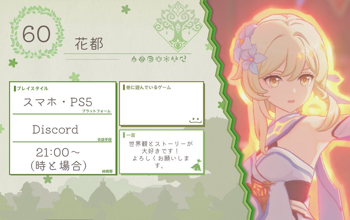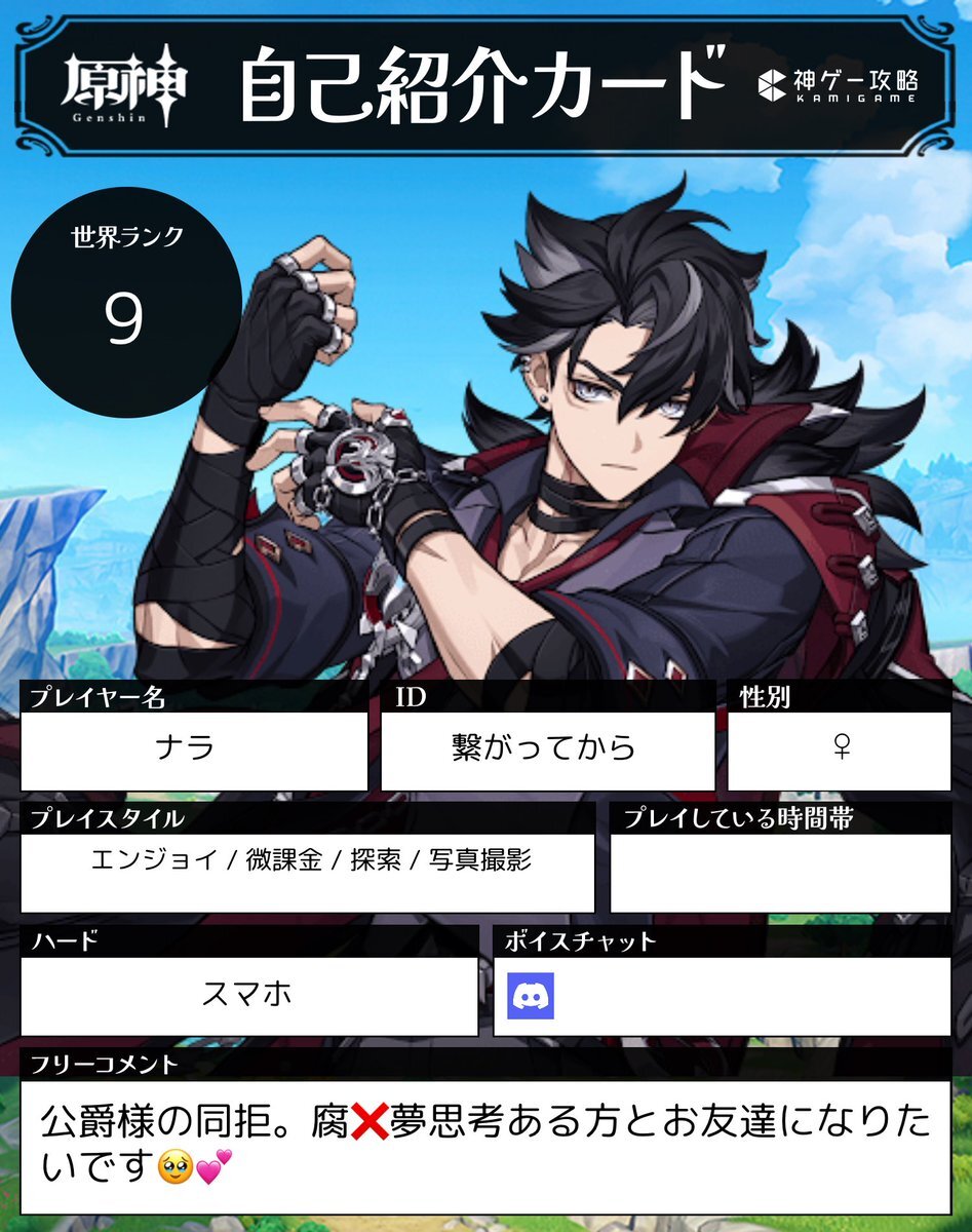 気侭に探索や精鋭狩り雑魚狩りに聖遺物厳選等が、出来る御友達を大募集です、xだけの繋がり等も◎ #原神5周年 #原神プロフィール帳 #原神好きな人と繋がりたい #原神絵描きさんと繋がりたい x.com/_tanakamaaaan_…