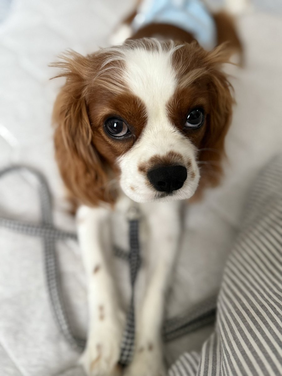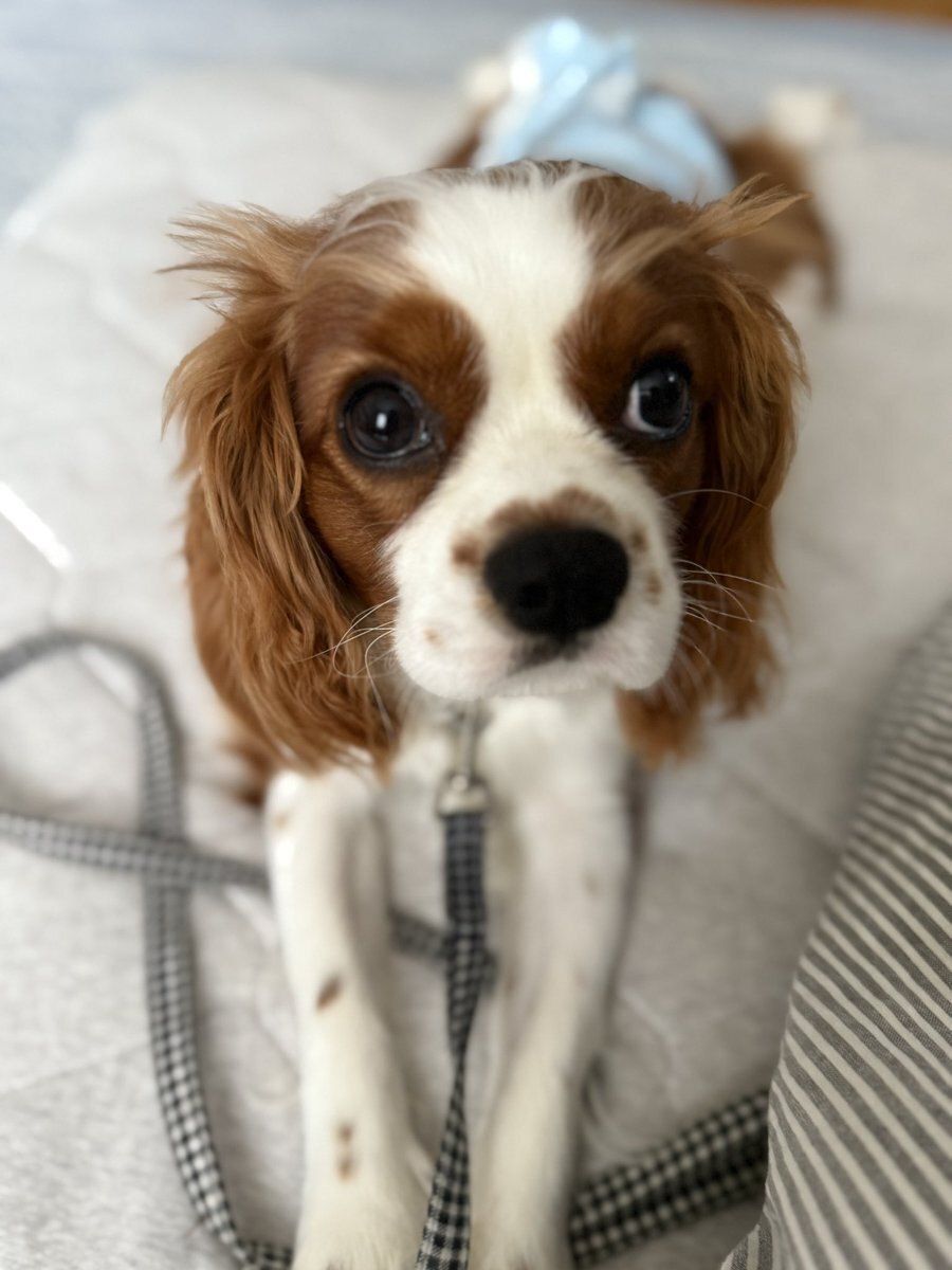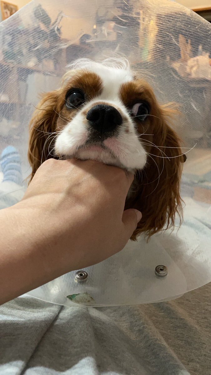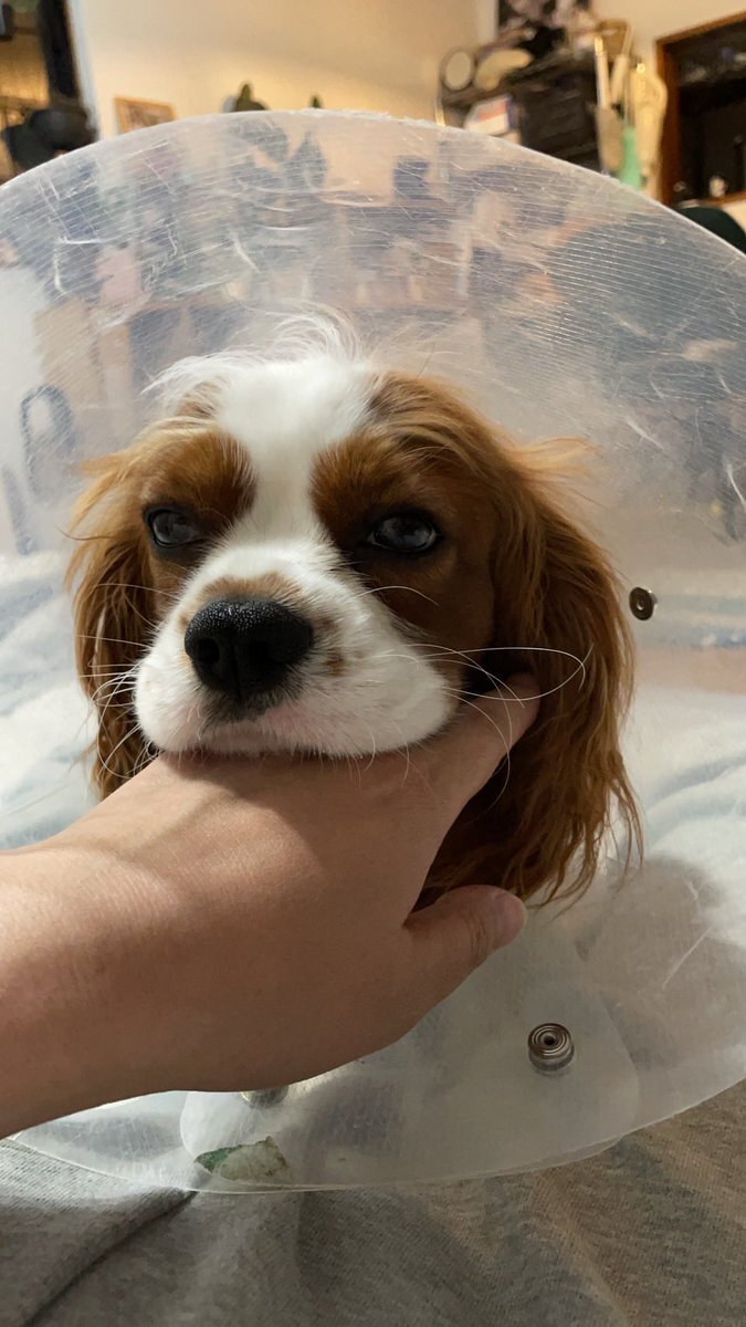 ぱむ、去勢手術してきました🐶 かあたんが分離不安で大変だったわ! 前と後の様子 でも病院着いた時はルンルンで看護師さんに抱っこされて行ったよ。振り返りもしなかったよ。笑 #ぱむ #キャバリア #去勢手術 pic.x.com/EWfr6wiTtA
