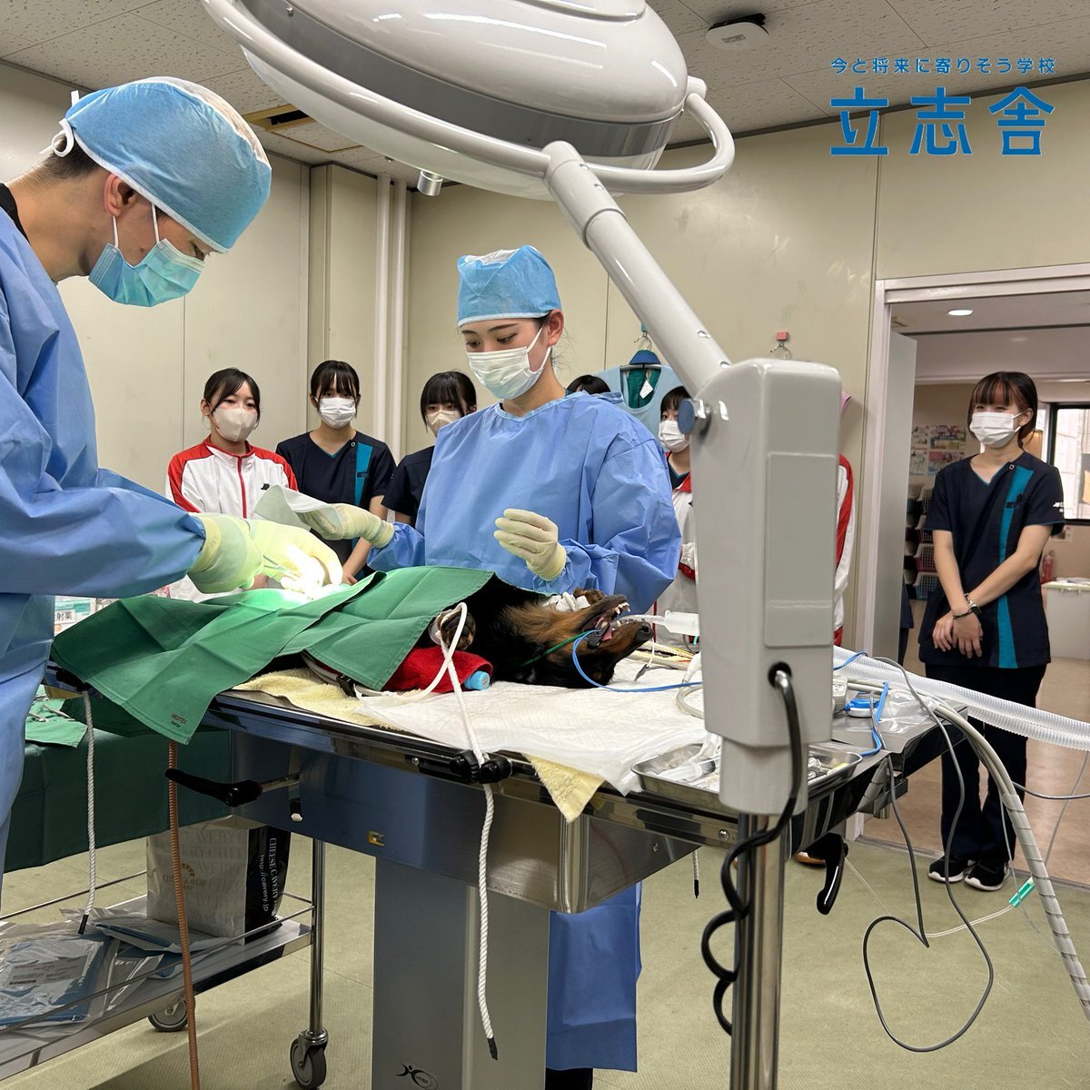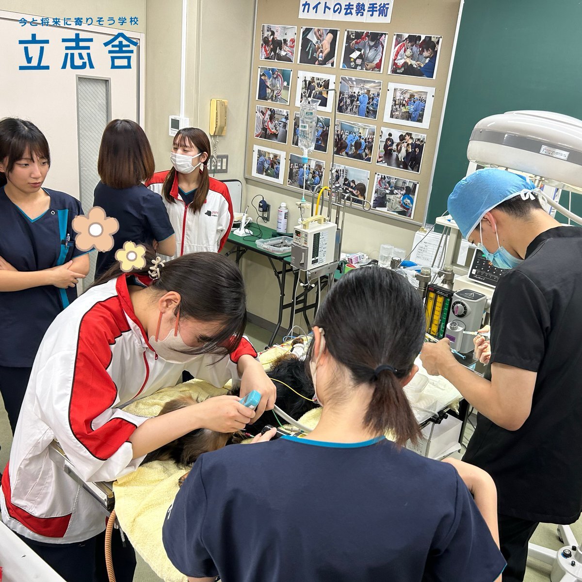 先日、学校犬のまめたくんの去勢手術とスケーリングを行いました✨一般的な術式とは異なる方法での手術だったので、看護3年生は見学しながらしっかり学んでいました👏🏻 #日本動物専門学校 #立志舎 #オペ実習 #去勢手術 #ミニチュアダックス pic.x.com/JteFoPkZWh