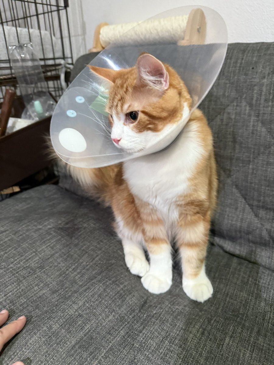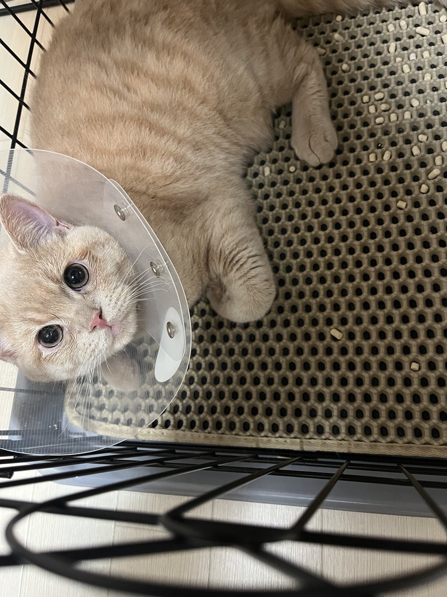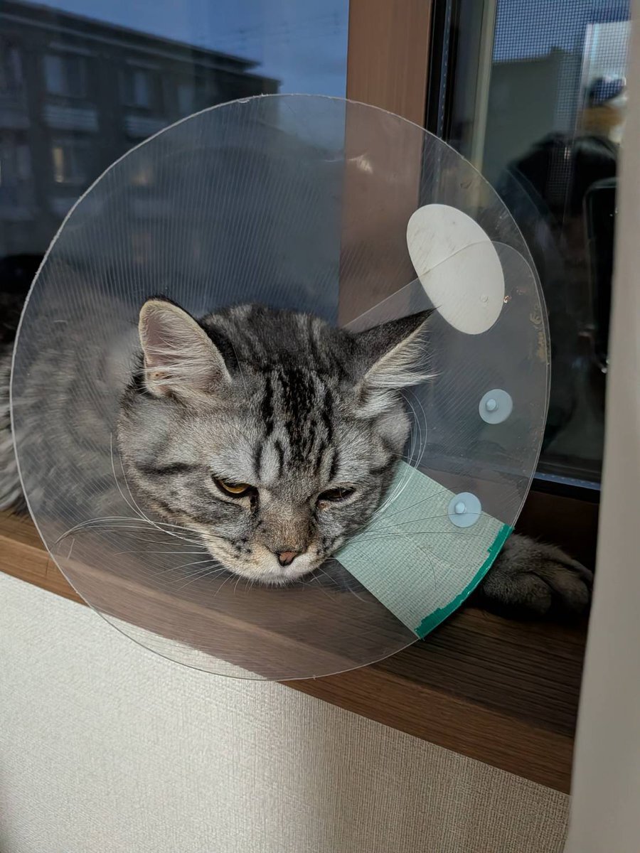 去勢手術、無事終了しました💮 人生(猫生)初の病院お泊まり、おつかれさま…! エリカラ生活1週間、すでにちょっとイライラ中😅 がんばれダイキチ。 #去勢手術 #おつかれにゃん #エリカラ生活 #猫のいる暮らし #スコティッシュフォールド #猫好きさんと繋がりたい #ダイキチ pic.x.com/VMQ2AM4HY2