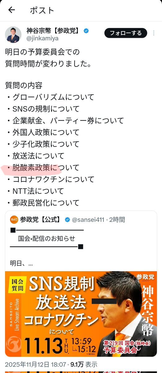参政党🟠神谷くん 『私のスタッフが間違えて「脱炭素」を「脱酸素」て書いてあったんですよ。そしたらそれ切り取って、参政党は酸素なくすらしい、もうネットで盛り上げています。小学生か!』 →失敗を部下のせいにするって 一番尊敬されない上司なんですよ?