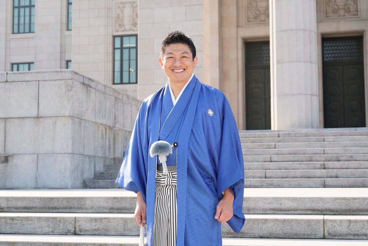 七五三の写真です。 取りこんだ洗濯物みたいに手前で転がってるのが本日の主役です。