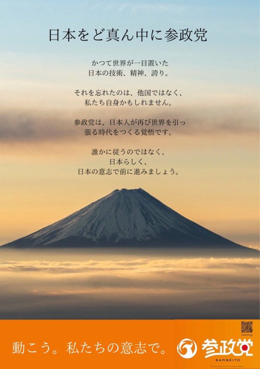 かつて! 日本🇯🇵は輝いていた! あの頃の日本が忘れられない!もう一度!その輝きを取り戻す! 誇りを忘れた!日本人! 気概を持たない!日本人! そんな全ての日本人へ! 参政党の日本を取り戻す! 挑戦が始まった! 日本をど真ん中に参政党! #参政党を大きくしよう pic.x.com/q39INAMUZH
