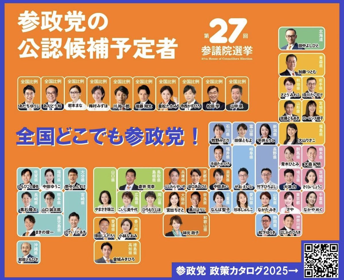 各都道府県の、支部連合のアカウントをまとめました。ツリーで繋げていきます。 街頭演説や議員さん・候補者さん達の情報が取得しやすくなります🙌フォロー推奨!🍊 #参政党が日本を取り戻す #参政党支持者はフォロー推奨 #参政党を大きくしよう pic.x.com/GR7Todm6pY