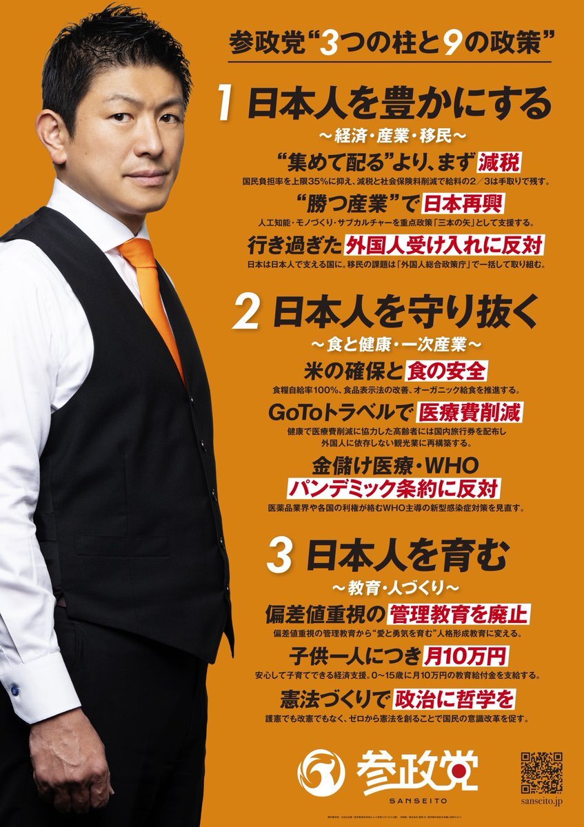 行くぜ!参政党! 神谷宗幣を中心に!国士だけが集結した!奇跡の政党! 疲弊した日本🇯🇵を立て直す事が出来るのでは参政党しかない!参政党を与党に!これが 日本の合言葉だ! #参政党を大きくしよう pic.x.com/jn8r4Hm40r