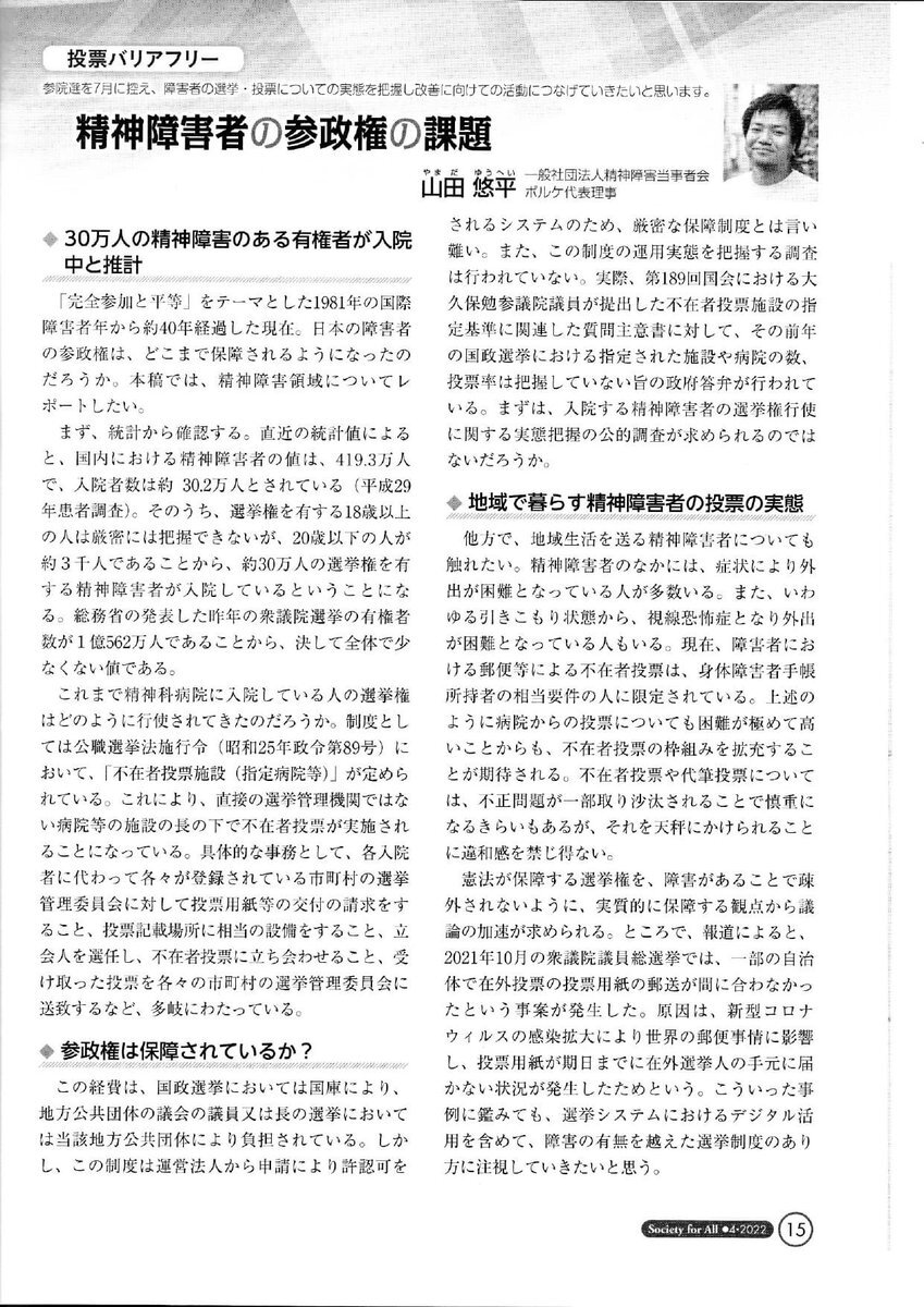前の引用の中の、ラジオ番組が終了でした。。 代わりに、東京の精神障害者の当事者会「ポルケ」が掲載していたモノを紹介。 【#参政権】について。。 こういう運動も頑張れば、日本の精神病院が、変わるのだ!! 精神病患者にこそ!、投票させよ。 pic.x.com/PiCR8ub1FH