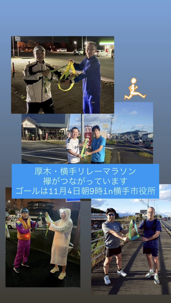 【厚木・横手リレーマラソン 襷がつながっています!】 現在、横手に向かって走行中🏃♂️➡️! ゴールは11月4日朝9時、横手市役所本庁舎前市民広場です! #yokote #友好都市 pic.x.com/KakKmHx9Kr x.com/yokote_city/st…