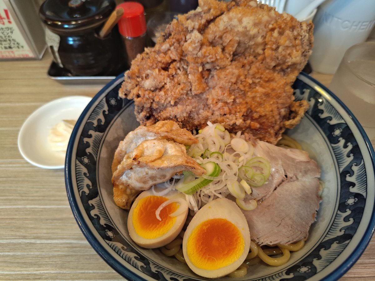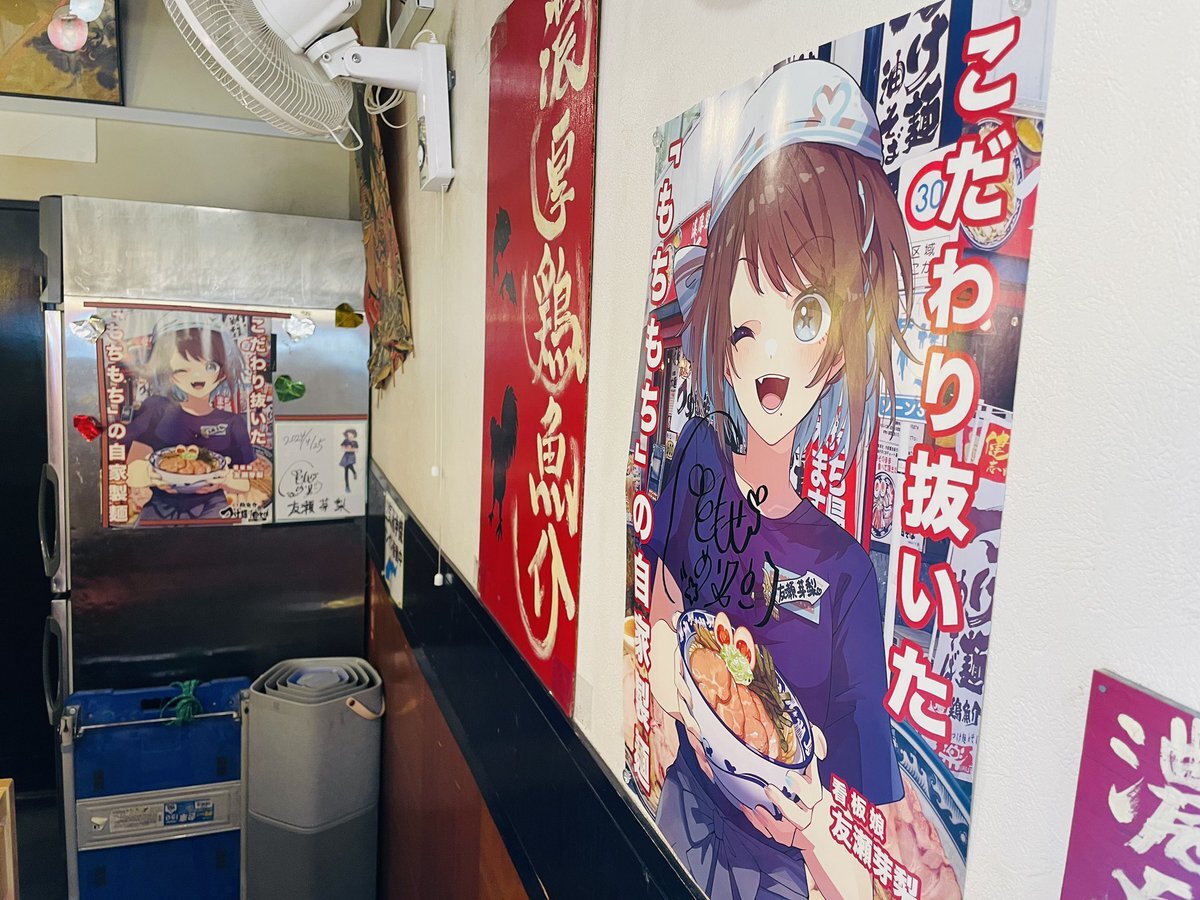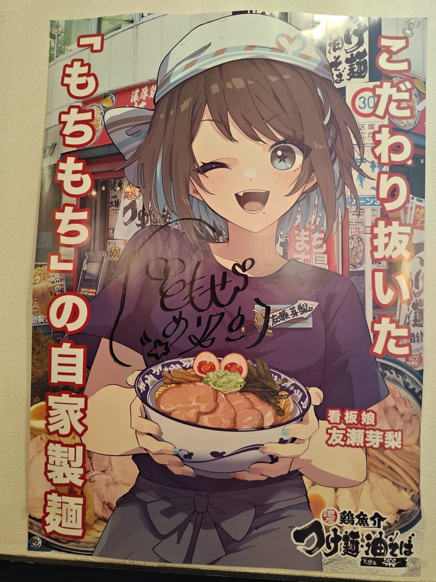 行きたかったラーメン屋さん、弾丸出張の目的地の通り道だったから行ってきた。東京来てめちゃくちゃ歩きまくってたのでとても良い充電基地。唐揚げデカくてサクサクで最高だぜー!!今回は油そばいただいたけど、次はつけ麺挑戦したい。 わいの推しVtuber #友瀬芽梨 ちゃんが看板娘してました🩵🤎