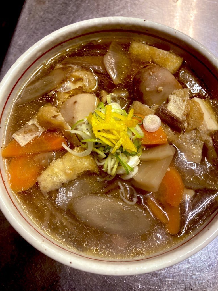 双葉食堂若旦那です☔️朝から大雨ですね〜👨‍🍳☔️今日から茨城県の郷土料理〜双葉特製けんちん蕎麦うどん!税込1,200円で販売開始です♪味噌醤油仕立ての優しい味!里芋・人参・大根・芋柄・椎茸・ごぼう・蒟蒻・油揚げ・豆腐入り具沢山。👨‍🍳🍜🍁 #双葉食堂 #双葉特製けんちん蕎麦うどん #大子町 #茨城県 pic.x.com/15pkNWoO8O