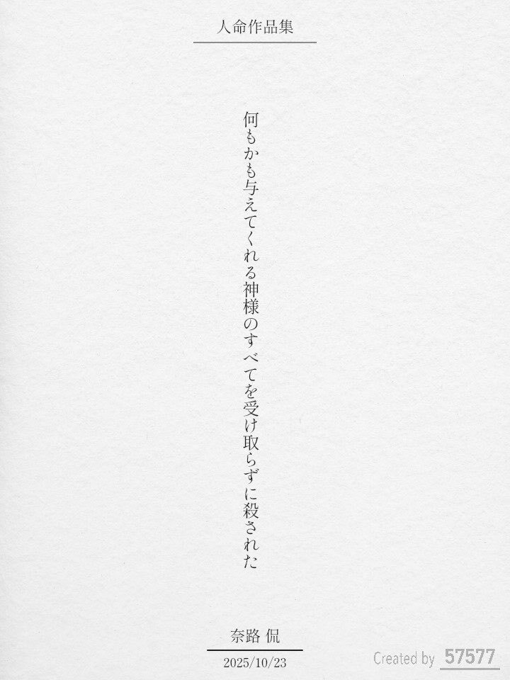 短歌 人命作品集 何もかも与えてくれる神様のすべてを受け取らずに殺された / 奈路 侃 tankaspot.web.app/tankaposts/f94… #短歌 #tanka #短歌アプリ57577 #反差別短歌 #表現の自由 pic.x.com/5Kcb9BDcLS