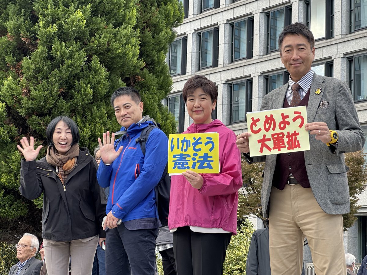 今日の大阪〜(*'▽'*) 左から #大椿ゆうこ #たつみコータロー #尾辻かな子 #清水ただし #憲法守れ #反戦平和 ※写真は撮れてませんが、この後れいわの大石あきこ衆議院議員も来られてます。 pic.x.com/emln8NhQP9 x.com/tadashishimizu…