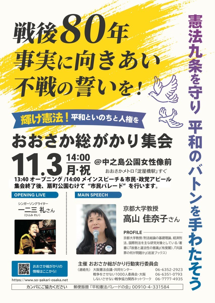 自民と維新が連立し、改憲や軍拡の流れが加速しようとしています。日本が戦後一度も他国への加勢も含めて戦争してこなかったのは戦争放棄を定めた憲法9条があったからです。79年前の今日発布された日本国憲法を守り活かす決意を込めて、中之島公園の憲法集会に向かいます。 #日本共産党 #清水ただし
