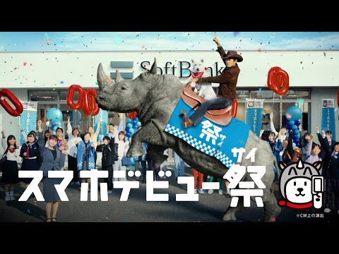 🎉 #スマホデビュー祭🦏 TVCM公開 🎉 “スマホデビュー祭(サイ)”にちなんで、 #反町隆史 さんがサイ🦏に乗って街中を駆け回り、 ソフトバンククルーの #齋藤飛鳥 さんはCMソングを熱唱✨ スマホデビューを検討中の皆さん、 ぜひソフトバンクのお店へお越しくだサイ!