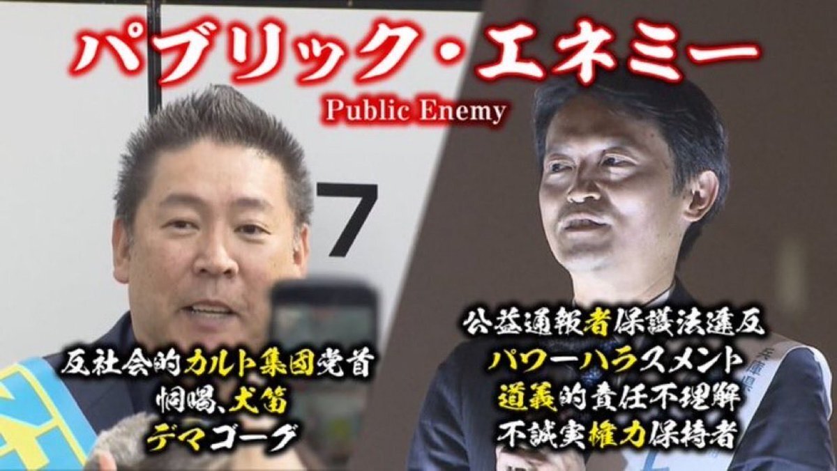 2人のパブリックエネミーが、いまだに人々を混乱に落とし入れています 斎藤元彦と立花孝志は人類の敵! 斎藤元彦は消費者庁の技術的助言を受け入れろ! 警察・検察!やる気あるんか! 仕事しろ! #斎藤元彦は人類の敵 #立花孝志は人類の敵 #反社会的カルト集団から社会を守ろう x.com/hanashihou/sta…
