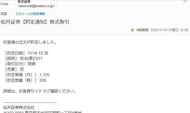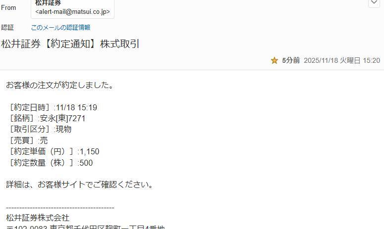 返信先:@nakam3214🌸 #11月18日(火) の #取引 😊 #一部 #利食い 👍 🎖 7271 🎊 #安永 🎉 [ #現物 ] ⬆️⬆️ 🎖 #年初来高値 🎊 #更新 🎉 💷 #渋沢栄一 💷 の 💃 # 💃 🌸 #不敗神話 🌸 🌸 #自民党 🌟 #高市早苗 🌟 🇯🇵 #首相 🇯🇵 🌸 #stockvoice #Tradenote #カビュウ 😊 #まっち 😊 🌟#大谷翔平🌟🇺🇸#MVP🇺🇸 pic.x.com/xeEvWoRV8L