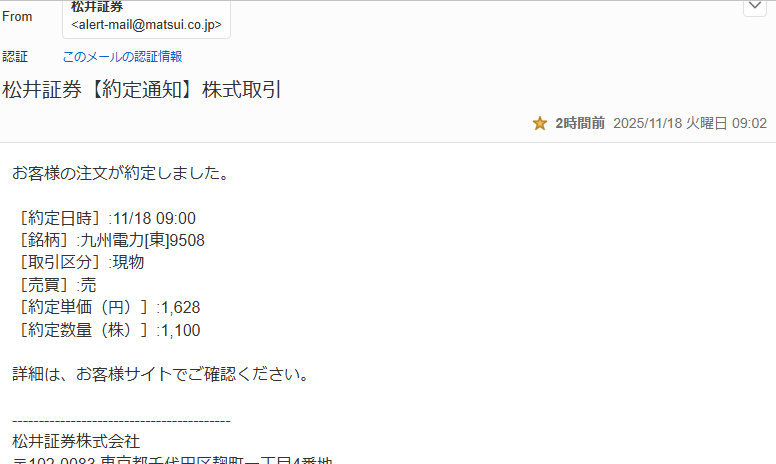 返信先:@nakam3214🌸 #11月18日(火) の #取引 😊 #利食い 👍 🎖️ 9508 🎊 #九州電 🎉 [ #現物 ] ⬆️⬆️ 🎖️ #年初来高値 🎊 #更新 🎉 💷 #渋沢栄一 💷 の 💃 # 💃 🌸 #不敗神話 🌸 🌸 #自民党 🌟 #高市早苗 🌟 🇯🇵 #首相 🇯🇵 🌸 #stockvoice #Tradenote #カビュウ 😊 #まっち 😊 🌟 #大谷翔平 🌟 🇺🇸 #MVP 🇺🇸 pic.x.com/s6GZ50cfaW