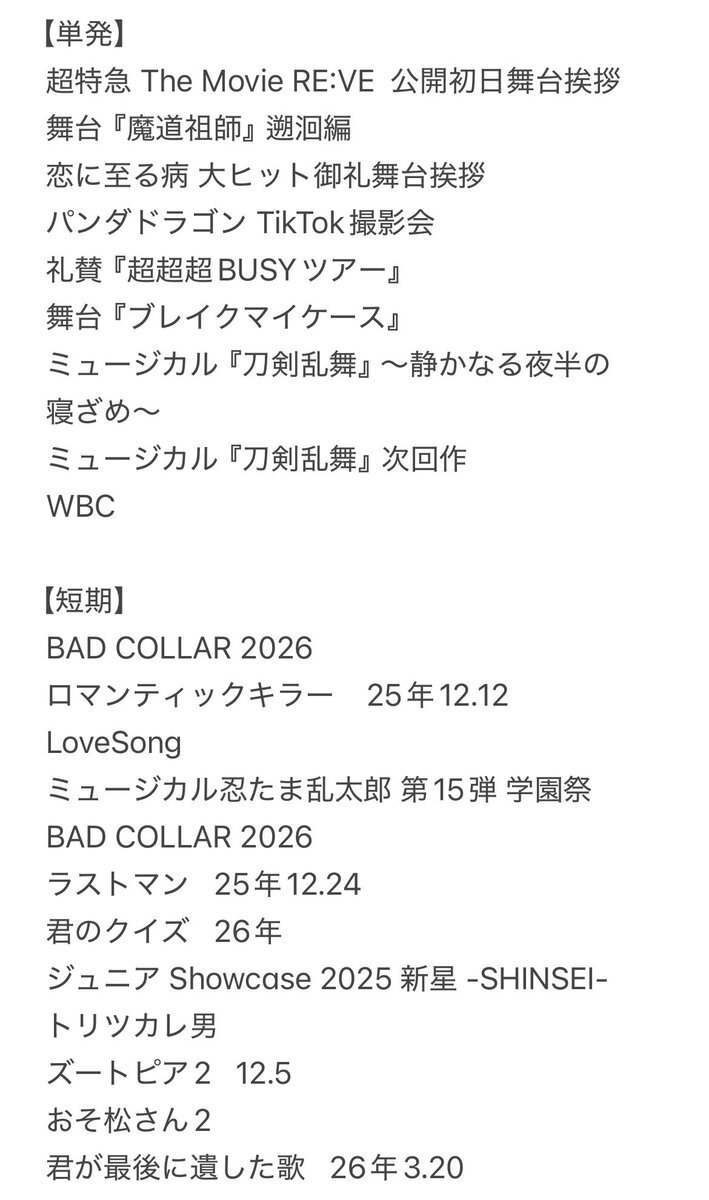 【チケット相互協力】 求▶短期: 「ほどなく、お別れです」 「サカモトデイズ」 目黒蓮次回作(未定) 長期:目/黒/蓮 譲▶下記画像以外 ぴあ、ローチケ、e+(一般1名義同士) 埋まり状況などお気軽にDMください。 #取引 #舞台挨拶協力 #相互協力 #取引垢と繋がりたい #申込協力 #チケット相互協力 pic.x.com/Nmdj1aRkh2
