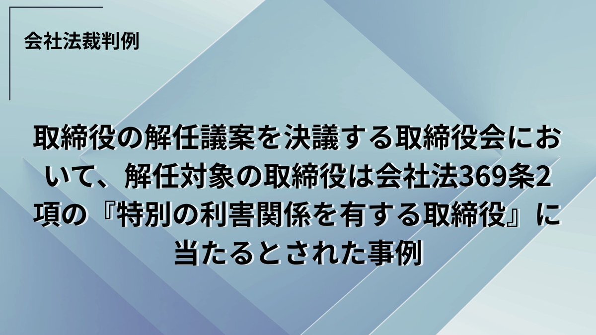 💡会社法裁判例 株主総会での取締役解任議案をめぐり、対象取締役が「特別利害関係人」とされた事例(東京地決平成29年9月26日)。 ▶内部紛争や事業承継の場面で、取締役会の議決手続きの扱いを整理する上で重要な判例です✨ 詳しくはこちらから👉kp-lo.jp/law-info/369.h… #会社法 #取締役 pic.x.com/xepRNnEyZp