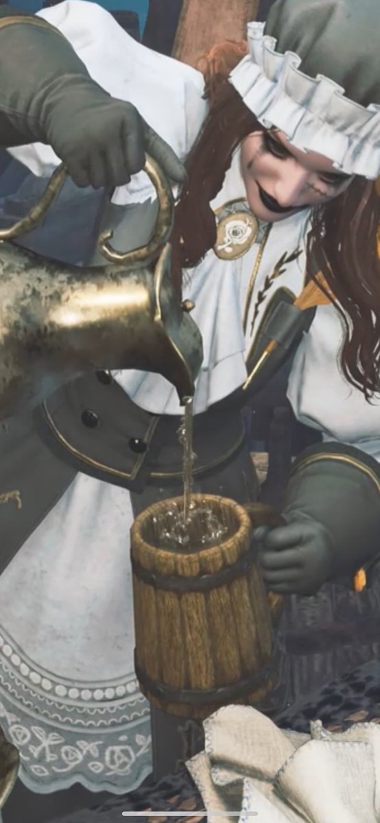 ちゃんと飲み物が溜まっていく表現まで凄いなー… 美味しい飲み物沢山作ってね! 今日は土曜だし朝からカフェやお酒飲んでChillしてる人多いんだろなー! 良い休日を🍖! #MHWilds #受付嬢 #良い休日 pic.x.com/dHglu01GNS